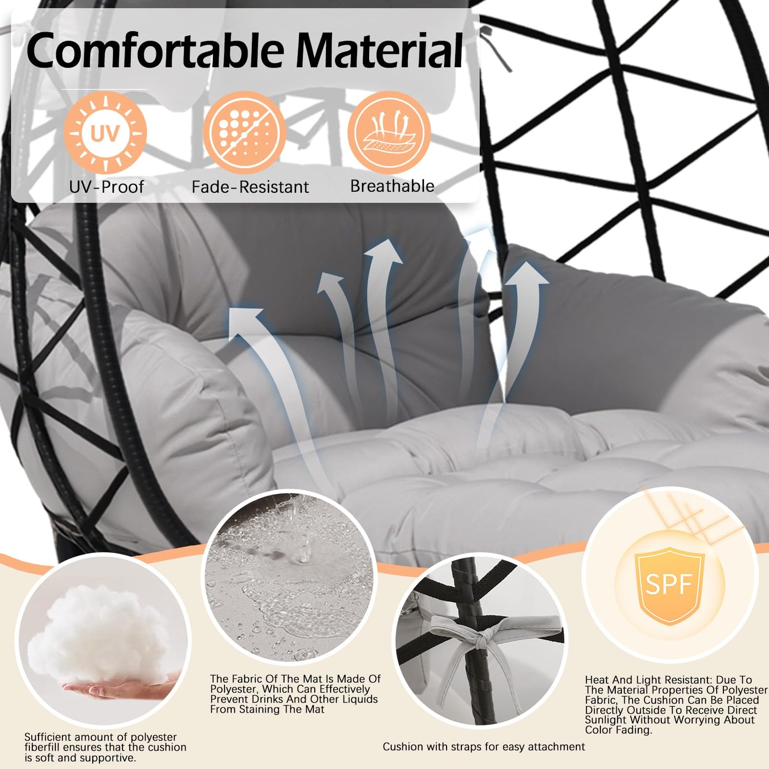 - THICKENED AND COMFORTABLE CUSHIONS - Support Long-Term Relaxation - The Hanging Basket Is Equipped With Thick Seat And Back Cushions, Which Are Filled With High-Density Sponges, Which Can Effectively Disperse Pressure, So That You Can Sit And Lie For A Long Time Without Feeling Uncomfortable. The Cushion Fabric Is Made Of High-Quality Fabric That Is Uv-Resistant And Durable, And It Is Not Easy To Fade Or Wear Even After Long Exposure To The Sun.