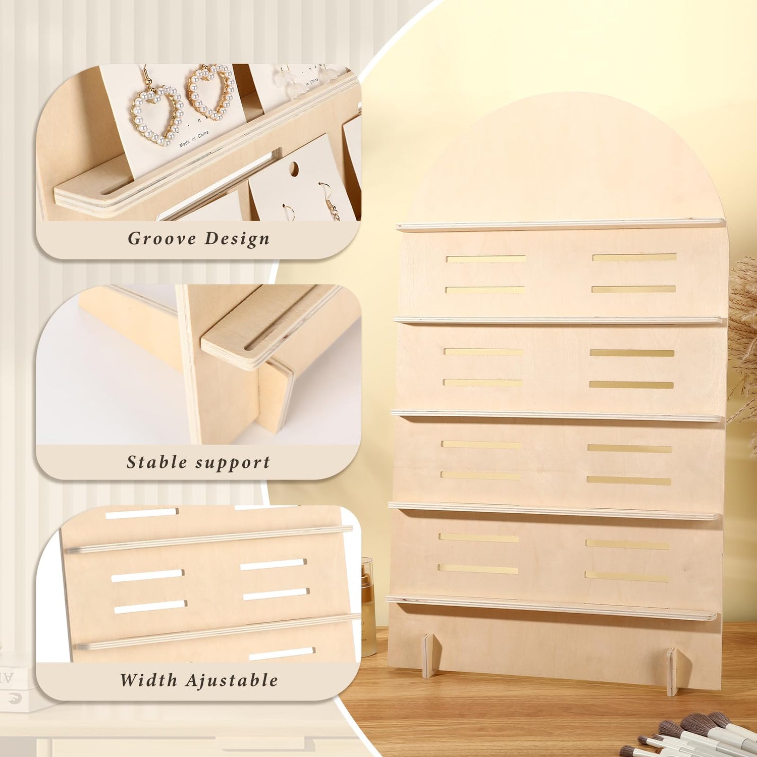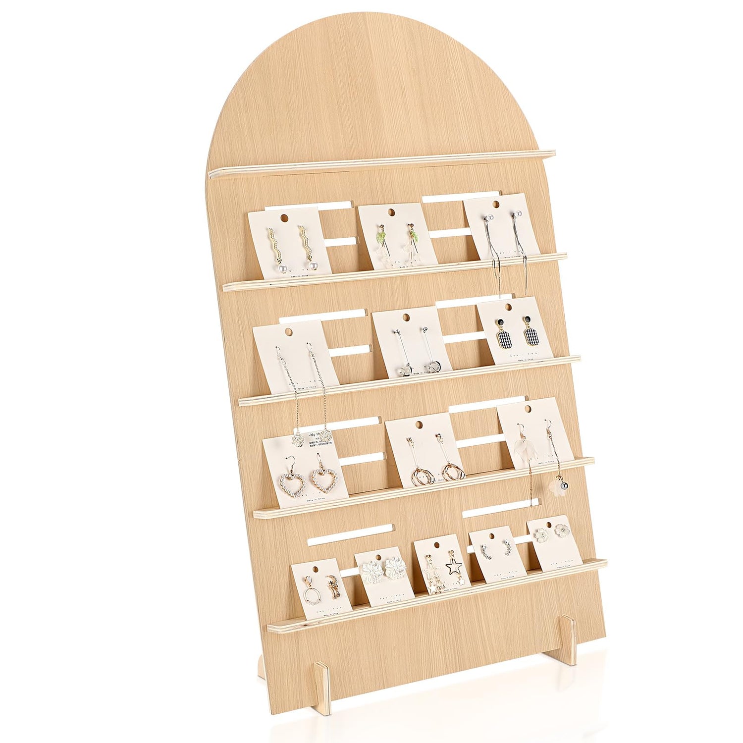 - Effortless Assembly: our 5 tier wood earring display stand is a breeze to assemble, with no tools required, you can set up your display in a snap and ready to show your beautiful earrings; Moreover, its delicate card slot design prevents dropping of earring cards, providing stability and peace of mind