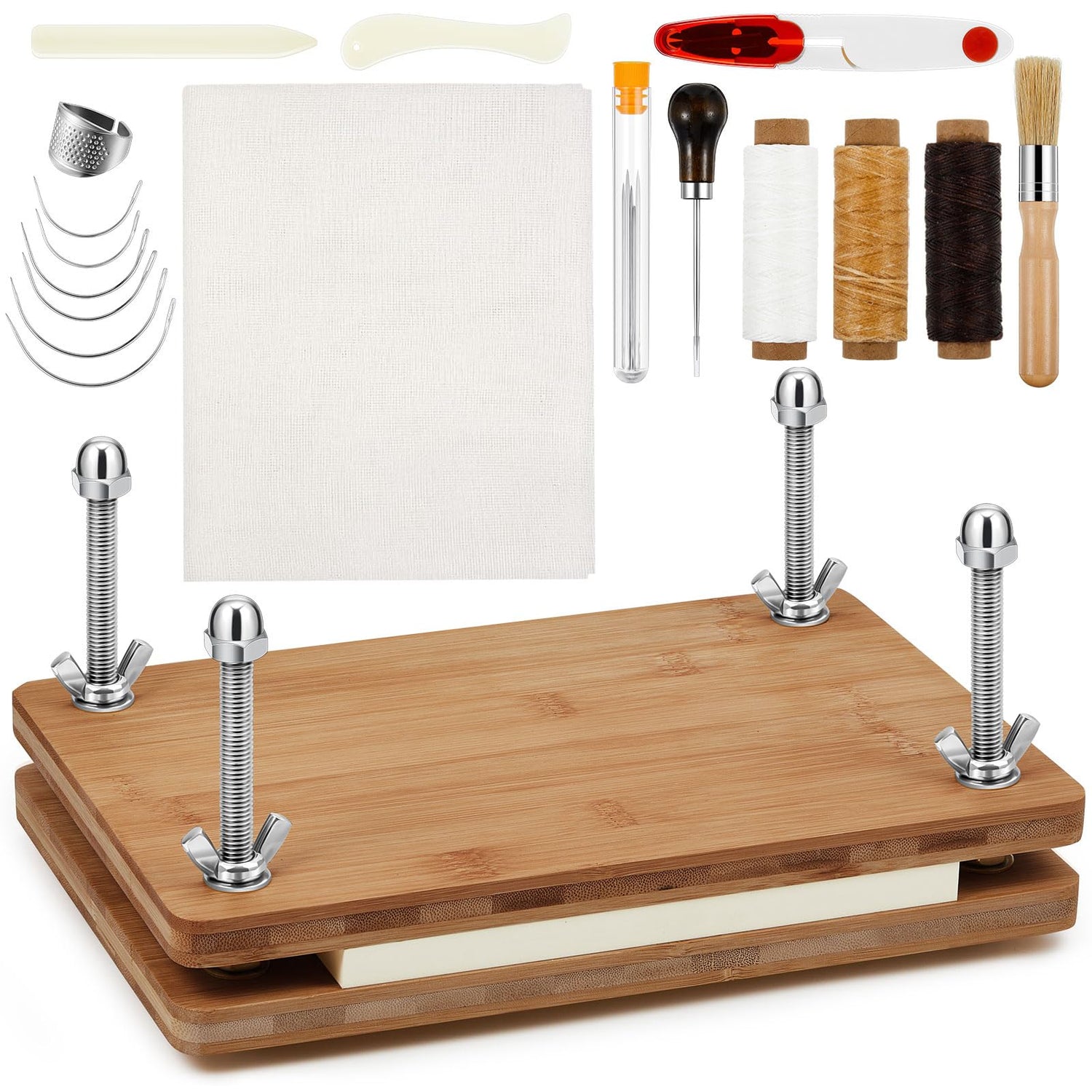 - Versatile and Applicable Tool: the book binding materials feature a multipurpose wood press, capable of accommodating various stages of the binding process; Whether to press the book, create holes in the page, or glue the spine of the book, this tool has bases covered allowing neat, professional finishes; The kit stresses ease of use, making it an ideal tool for beginners eager to learn bookbinding