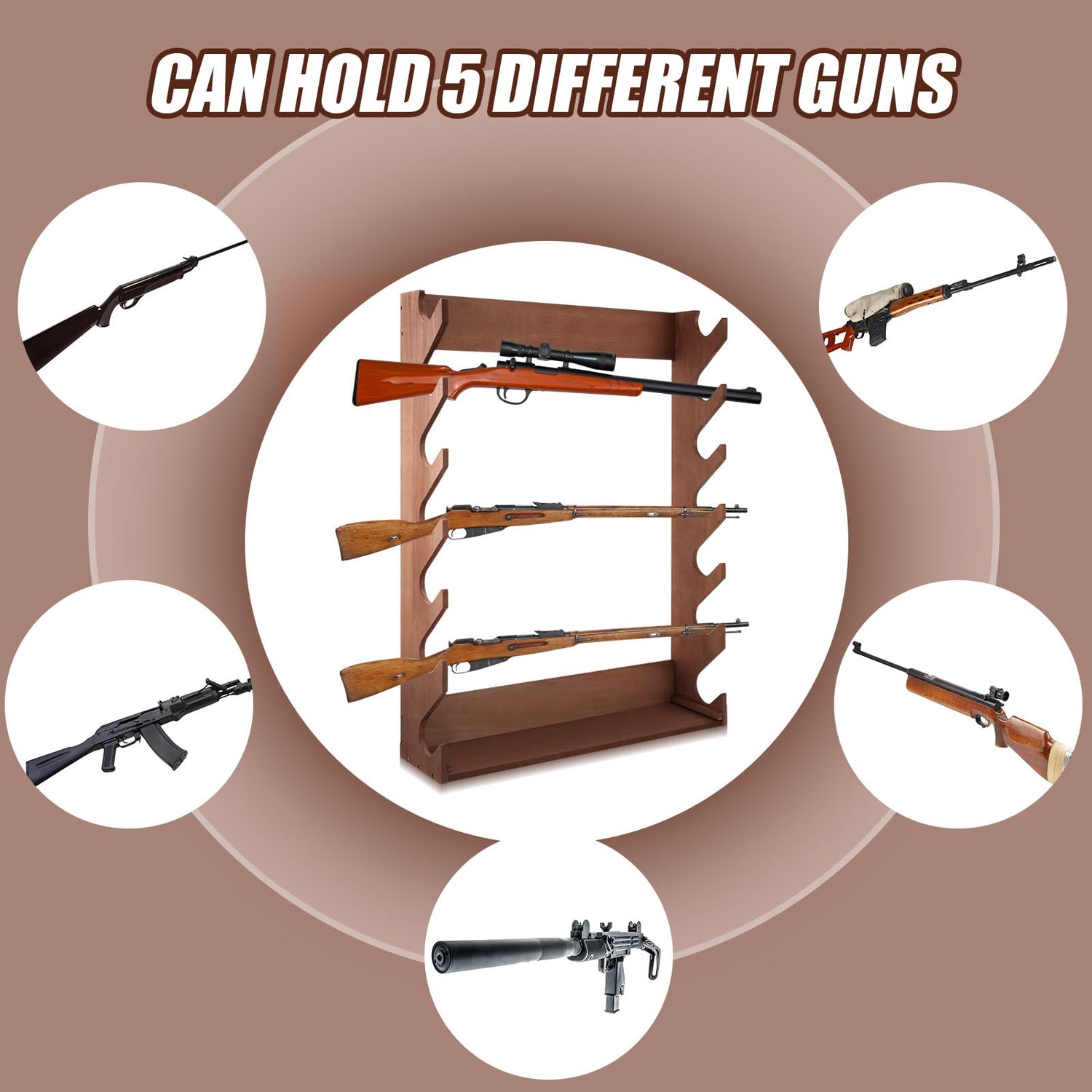 - Hold up to 7 Guns: this gun rack is designed to hold up to 7 guns of different lengths; The designed gun rack securely hold each gun in good condition; It provides a convenient and organized way to showcase your guns