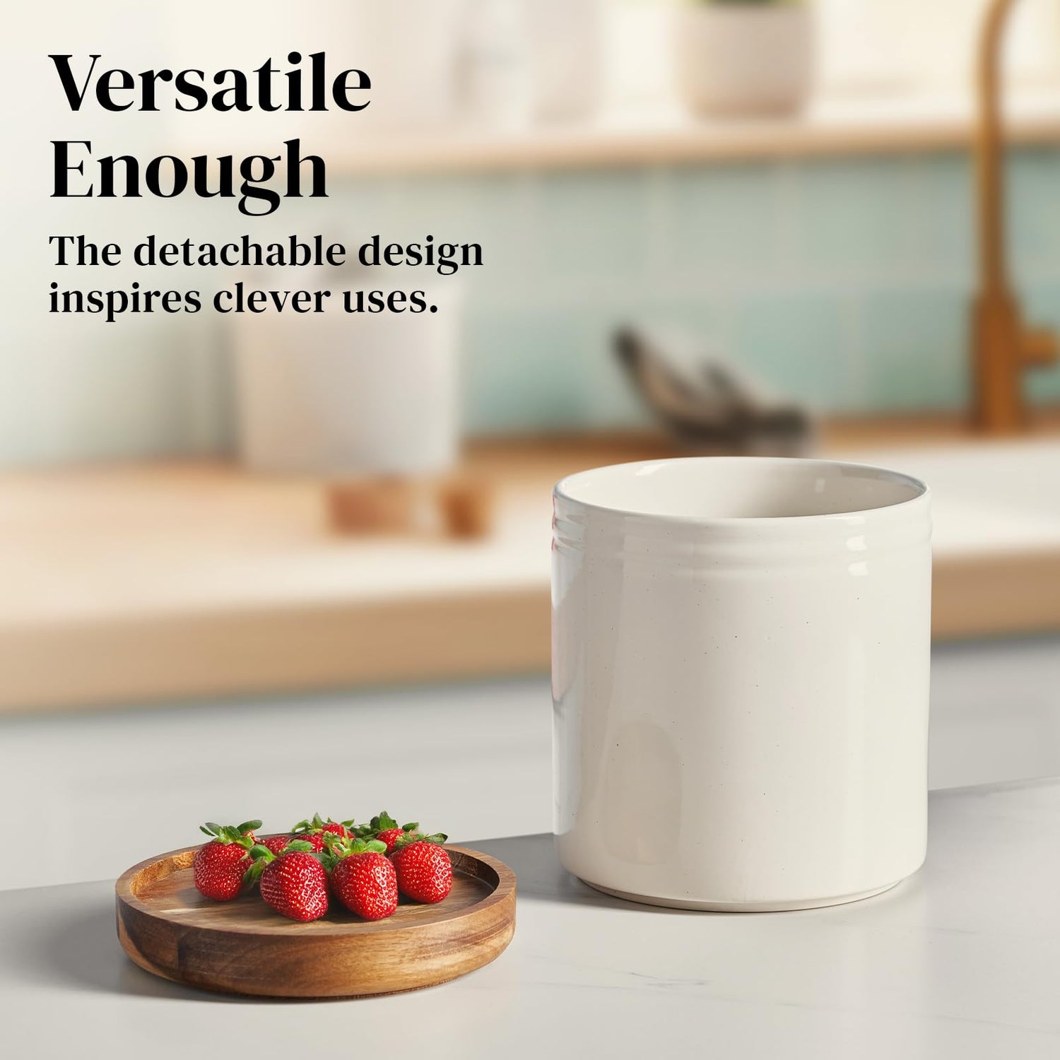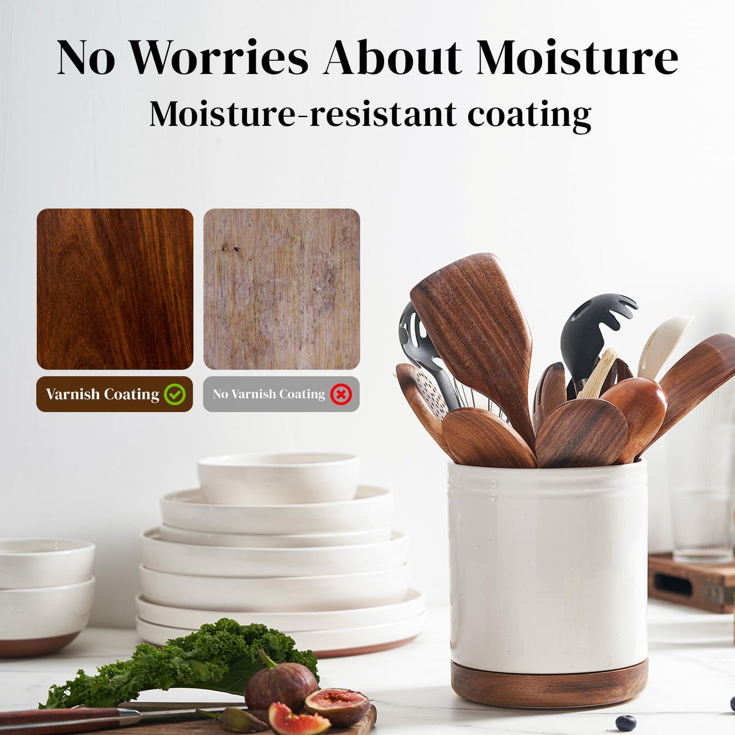 - Stable & Fall-Prevention Design: Enjoy excellent stability with our utensil crock, featuring a weighted bottom made from durable, removable wood. This design ensures your tools stay upright, preventing tipping during busy kitchen moments. The sturdy construction of this ceramic utensil holder keeps your kitchen organized, ensuring easy access to your tools.