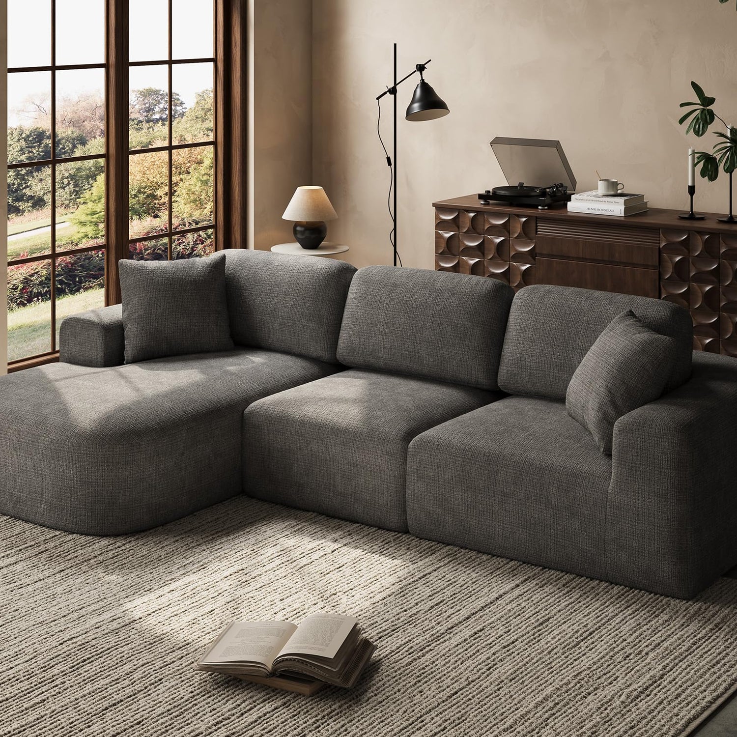 Dowinx 107'' Modular Sectional Sofa Couch with Chaise, No Assembly Required, Modern Bouclé-Inspired Upholstery, Convertible L-Shaped Design for Living Room – Charcoal Grey