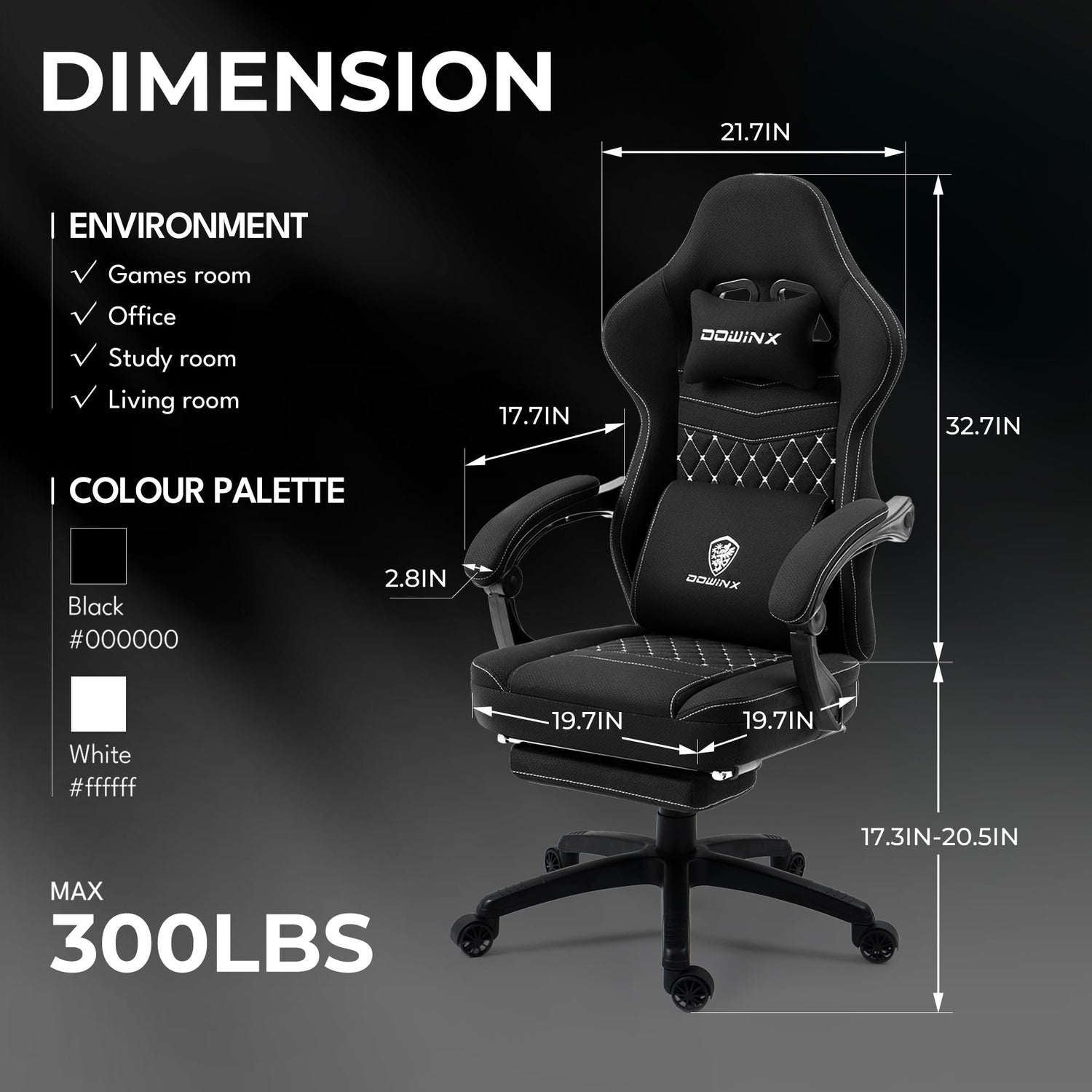 Dowinx Gaming Chair Breathable Fabric Computer Chair with Pocket Spring Cushion, Comfortable Office Chair with Gel Pad and Storage Bag,Massage Game Chair with Footrest,Black