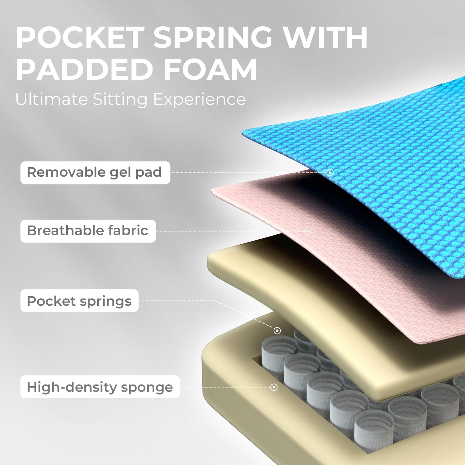 - [Individual Pocket Springs] The seat cushion is composed of pocket springs, a type of spring commonly used in sofas. Each spring operates independently, offering elasticity and support by adapting to pressure and contouring to your body's weight, providing a luxurious and comfortable experience akin to that of a sofa.