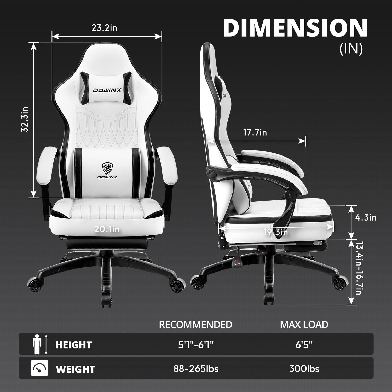 Dowinx Gaming Chair Breathable PU Leather Gamer Chair with Pocket Spring Cushion, Ergonomic Computer Chair with Massage Lumbar Support,Adjustable Swivel Task Chair with Footrest(Black&White)