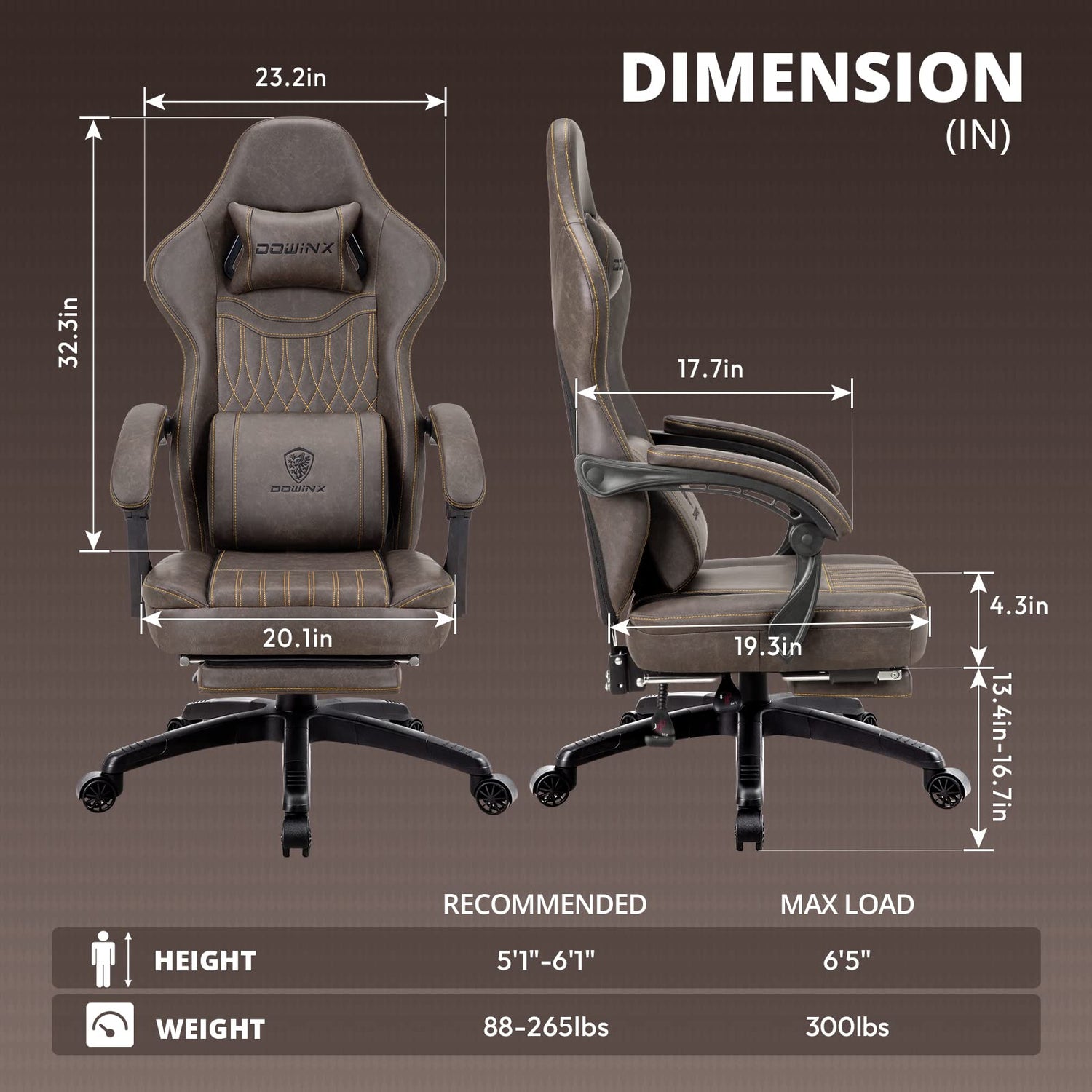 Dowinx Gaming Chair Breathable PU Leather Gamer Chair with Pocket Spring Cushion, Ergonomic Computer Chair with Massage Lumbar Support,Adjustable Swivel Task Chair with Footrest(Brown)