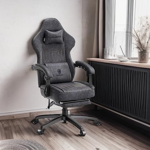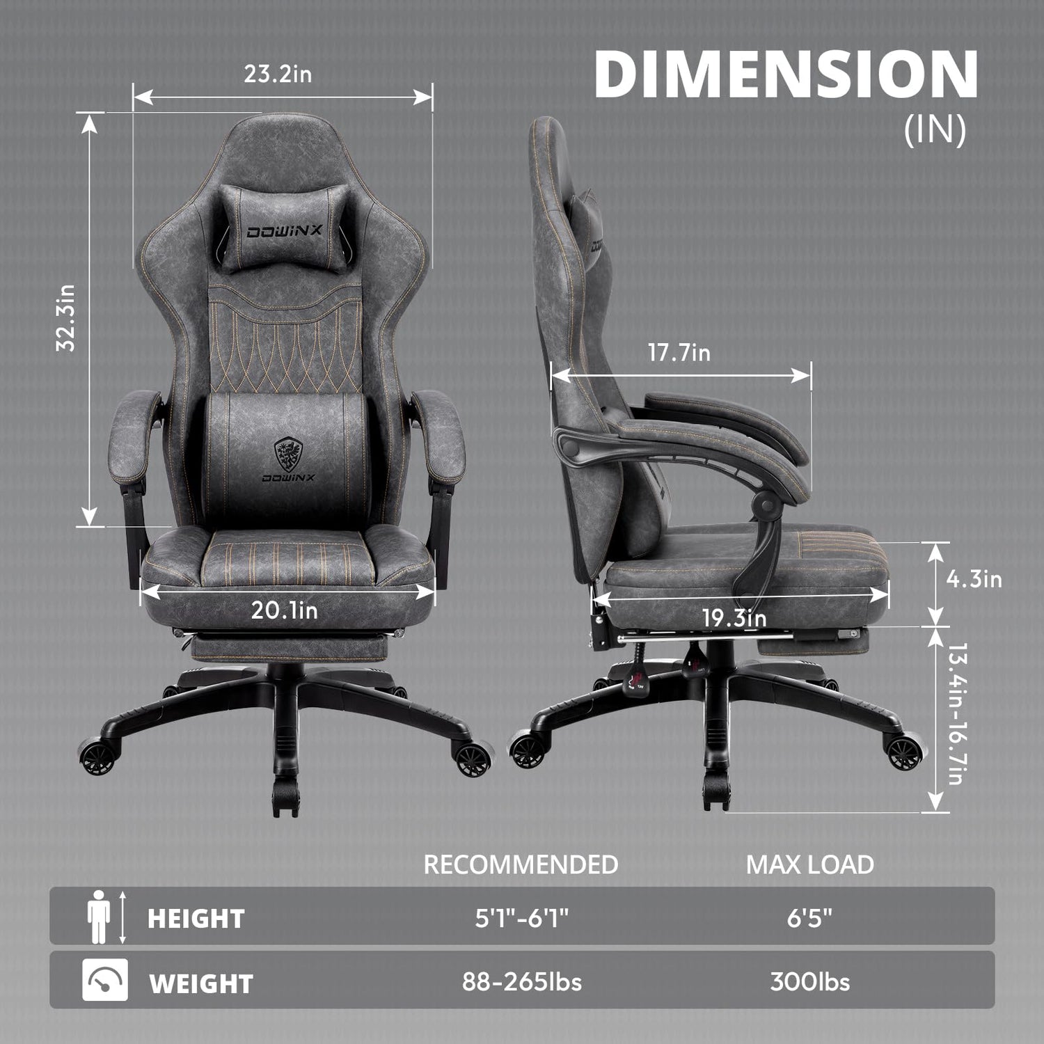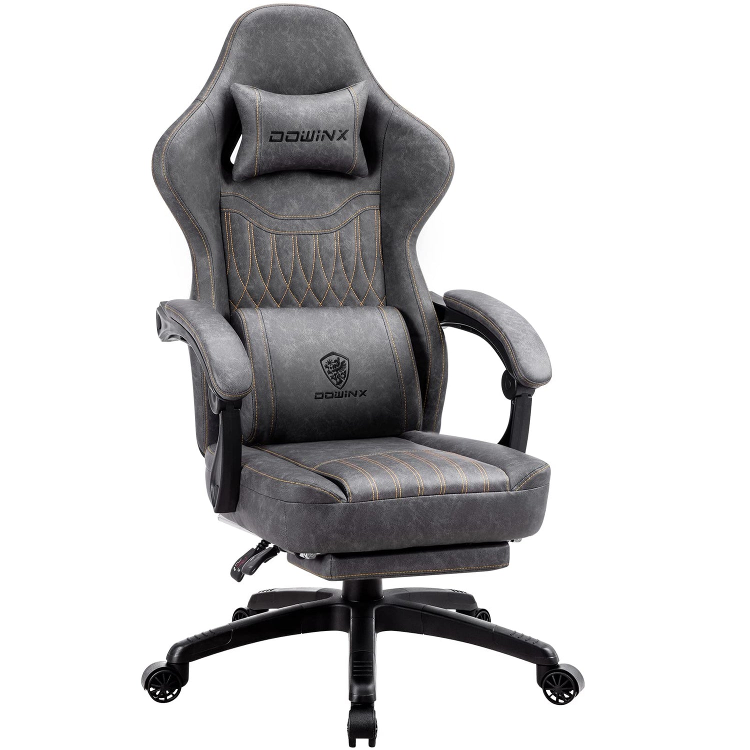 Dowinx Gaming Chair Breathable PU Leather Gamer Chair with Pocket Spring Cushion, Ergonomic Computer Chair with Massage Lumbar Support,Adjustable Swivel Task Chair with Footrest(Gray)