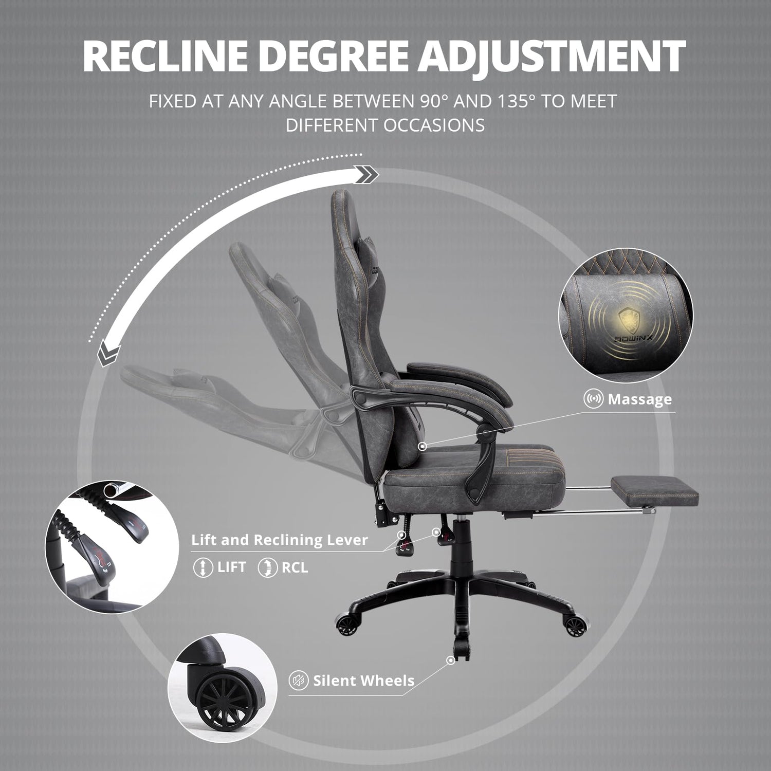 - 【SIMPLE AND RICH FUNCTIONS】Smooth 360-degree swivel wheels allow for easy and noiseless movement. The lumbar pillow with a USB cable provides a relaxing massage when you feel tired. The backrest can be tilted from 90 to 135 degrees, making it suitable for work, gaming, reading, or napping. The headrest and lumbar pillow can also be adjusted to ensure maximum comfort.
