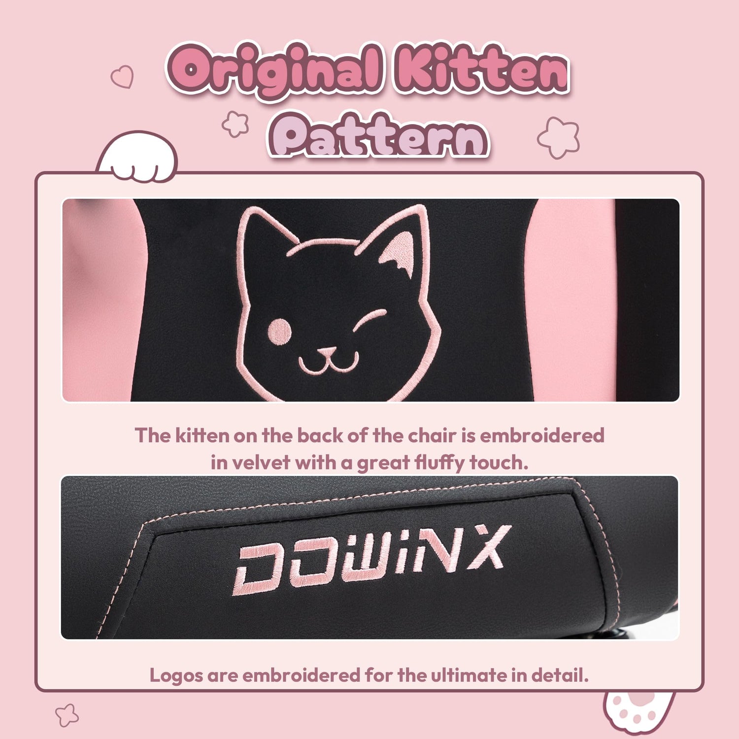 - Textured design: The gaming chair uses a leather finish overall, but uses a plush-feeling fabric at the backrest and cushion. This allows the chair to be twice as cute while also increasing breathability and placing heat and moisture buildup. The original cat head logo and brand logo are presented using embroidery, which is a more sophisticated way to present this chair.