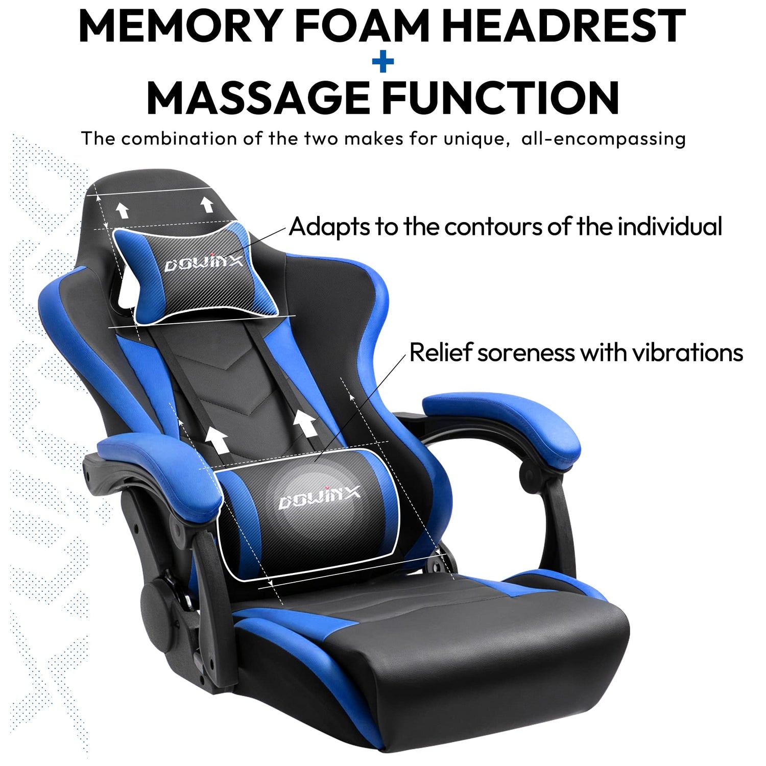 Dowinx Gaming Chair Ergonomic Racing Style Recliner with Massage Lumbar Support, Office Armchair for Computer PU Leather E-Sports Gamer Chairs with Footrest (Black&Blue