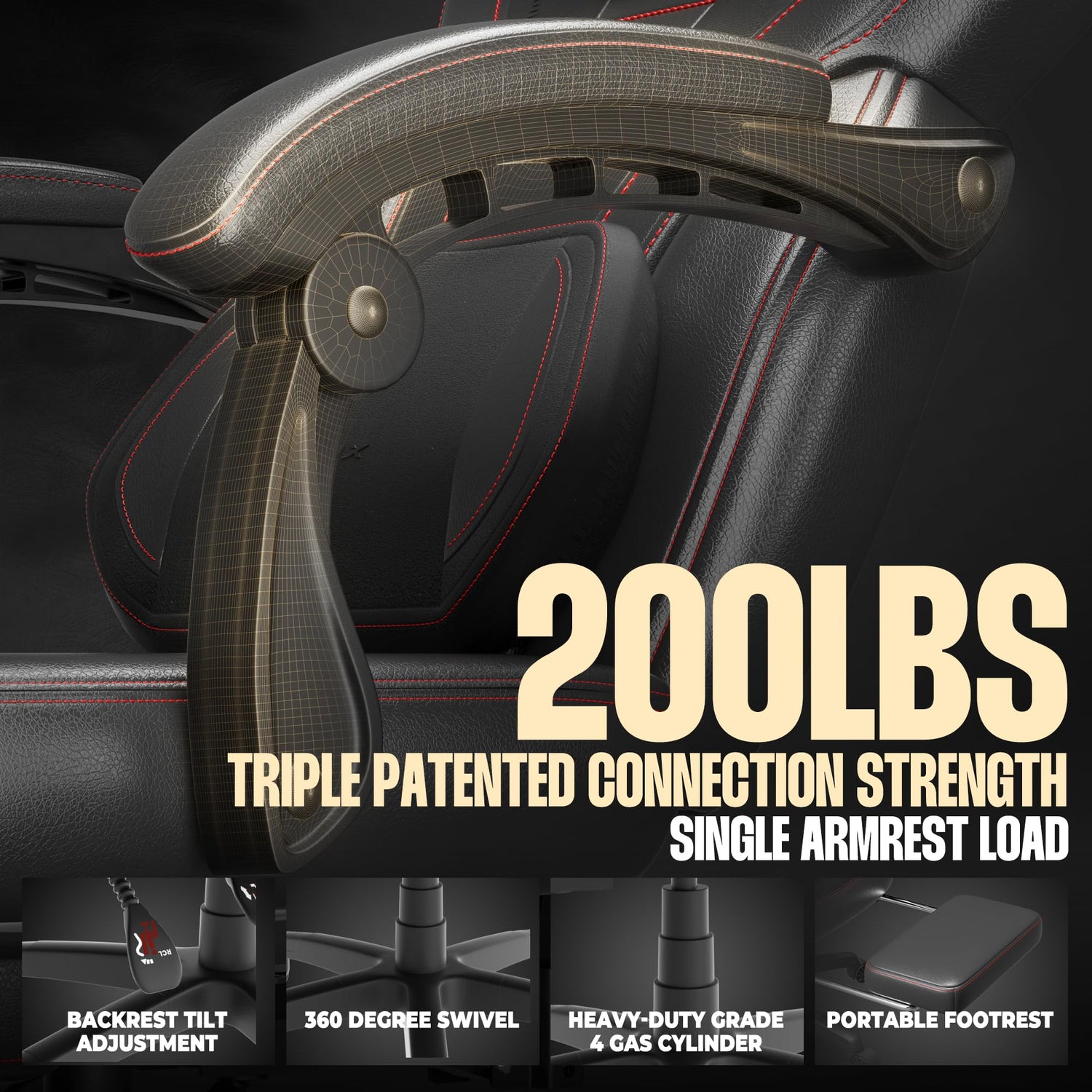 - Adjustable Ease for Play and Relax: Whether gaming, working, or chilling, this video gaming chair has you covered. Its backrest adjusts from a focused 90° to a relaxed 145 °, paired with an extendable footrest for ultimate ease. The sturdy 4-grade gas lift and upgraded mechanism ensure stability, offering reliable support at every angle.
