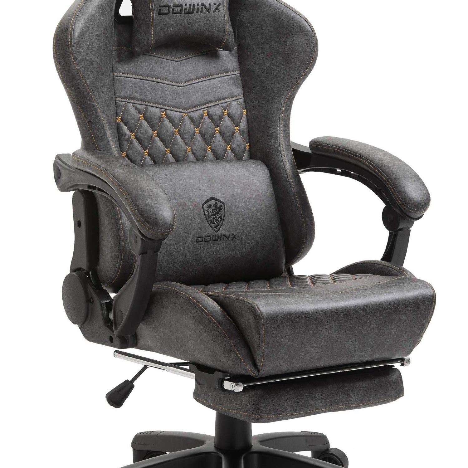 Dowinx Gaming Office, PC with Massage Lumbar Support, Vintage Style PU Leather High Back Adjustable Swivel Task Chair with Footrest (Light Grey)