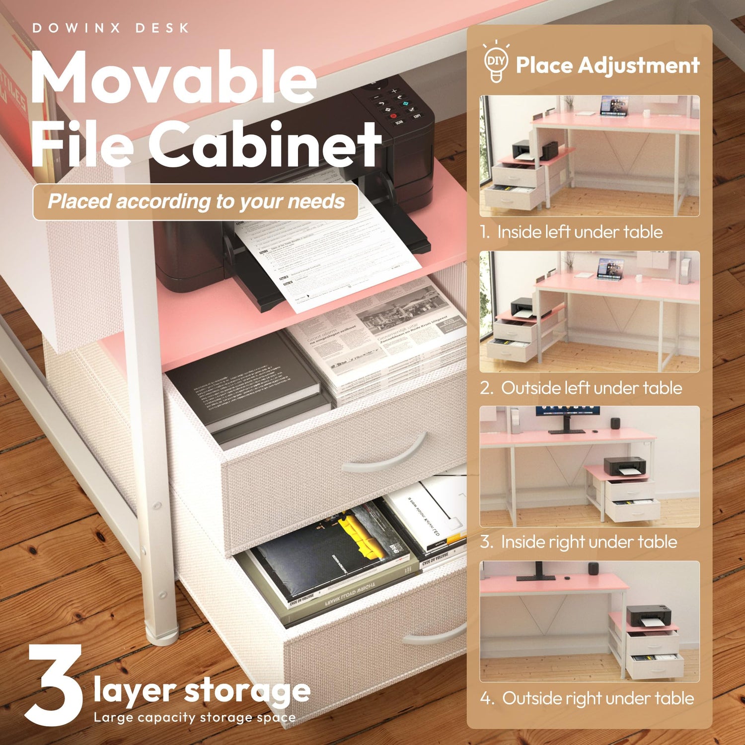 Dowinx L Shaped Desk with Pegboard and Drawers, Reversible 67” Gaming Desk with RGB Light and Power Outlet, Computer Corner Desk with Storage and Hutch for Game Office Home, Pink