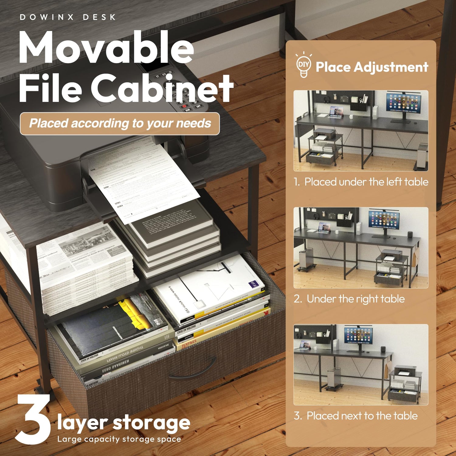 Dowinx L Shaped Desk with Pegboard and Removable Filing Cabinet, Reversible 67” Computer Gaming Desk with Power Outlet and Led, Office Corner Desk with Storage for Home Game, Black