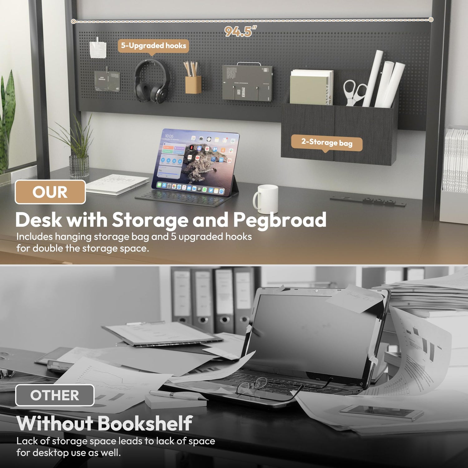 - Reversible L Shape Desk:The reversible computer desk can be formed into a 67inch - 47inch combination of a corner desk and a 94.5-inch long desk. And the top hutch can be placed to the left or right depending on your needs. L Shaped desk is perfect for tucking into a corner to maximize your limited space. The long office desk can accommodate 2 people to work or write at the same time, suitable for home office or study.