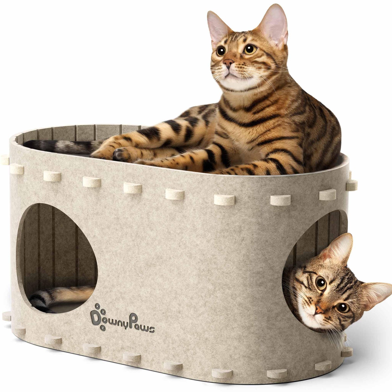 DownyPaws Cat House for Indoor Cats, Cat Bed Cave for Multiple & Large Cats Up to 22 Lbs, Scratch Resistant Peekaboo Cat Caves, Foldable Cat Tunnel Enclosed Bed, PeekaPurr, Cream