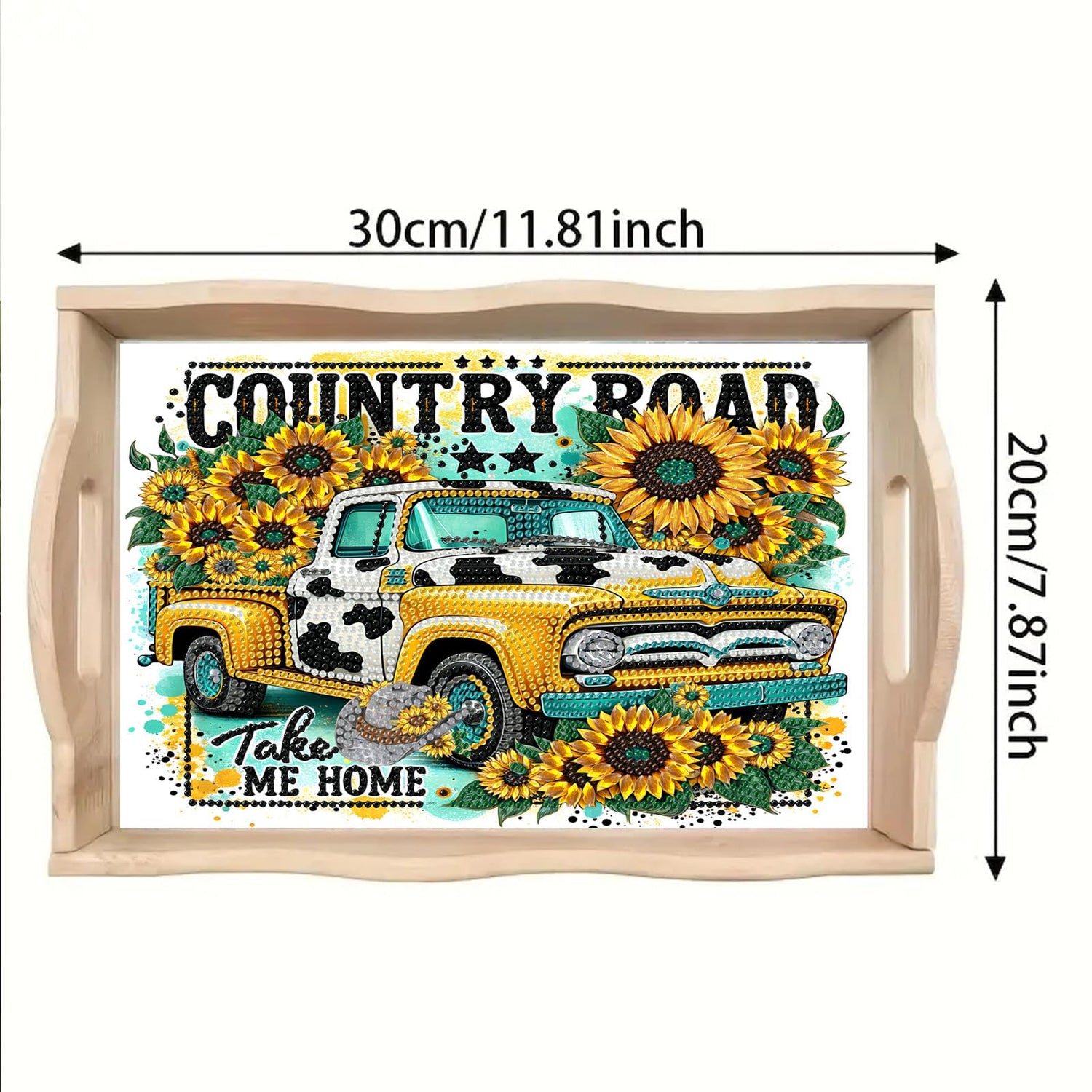DoxQcs DIY Diamond Art Wooden Tray Kit Easter Food Tray with Handle Diamond Painted Table Decoration Tray for Breakfast Bar Dinner Table Diamond Art Painting for Beginners-#02-Sunflower Car