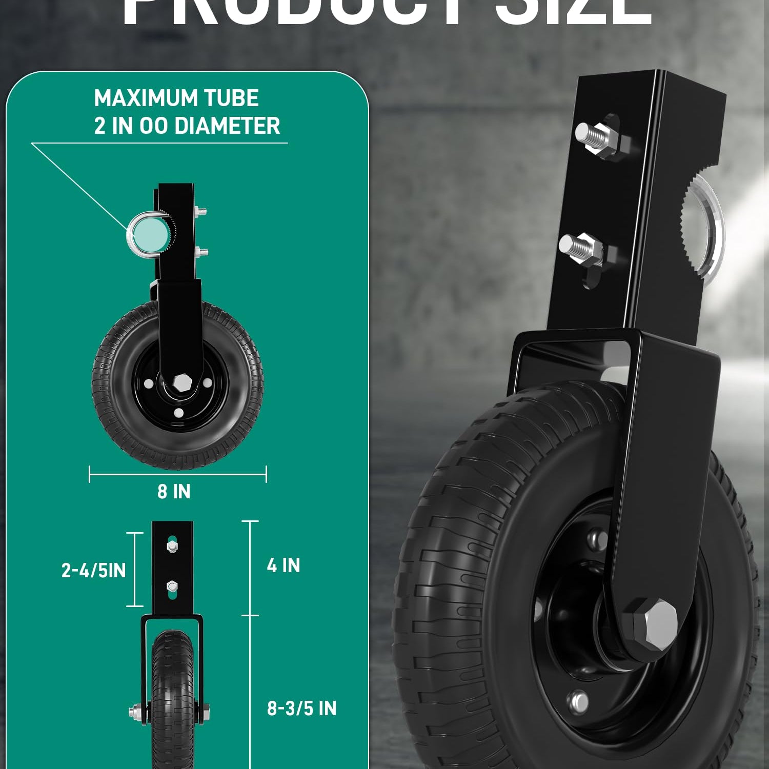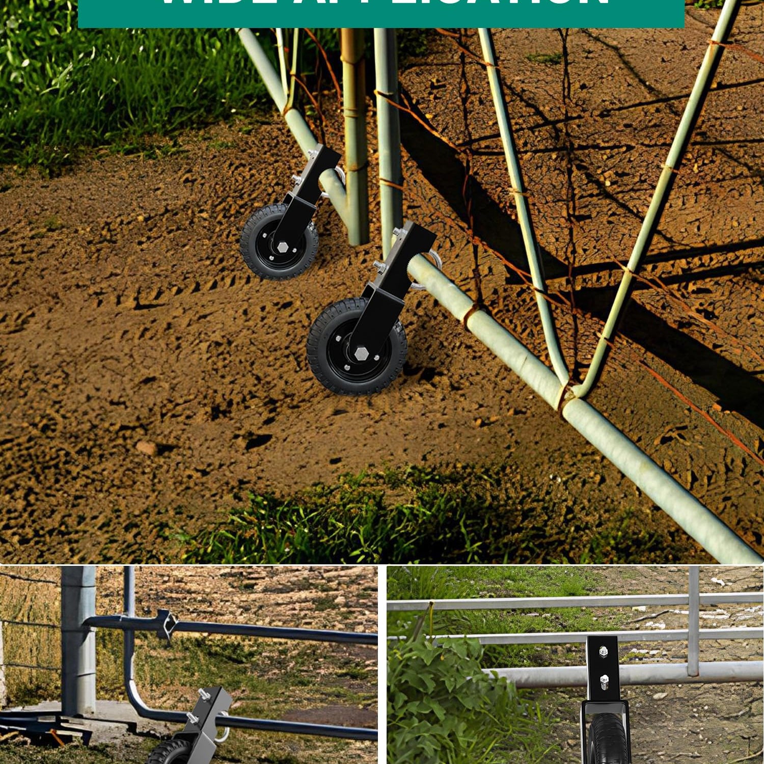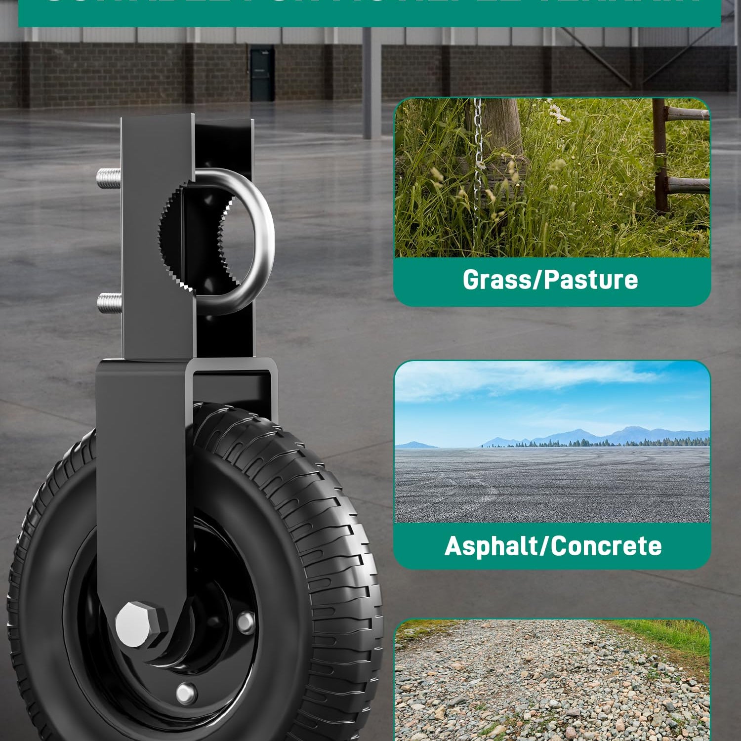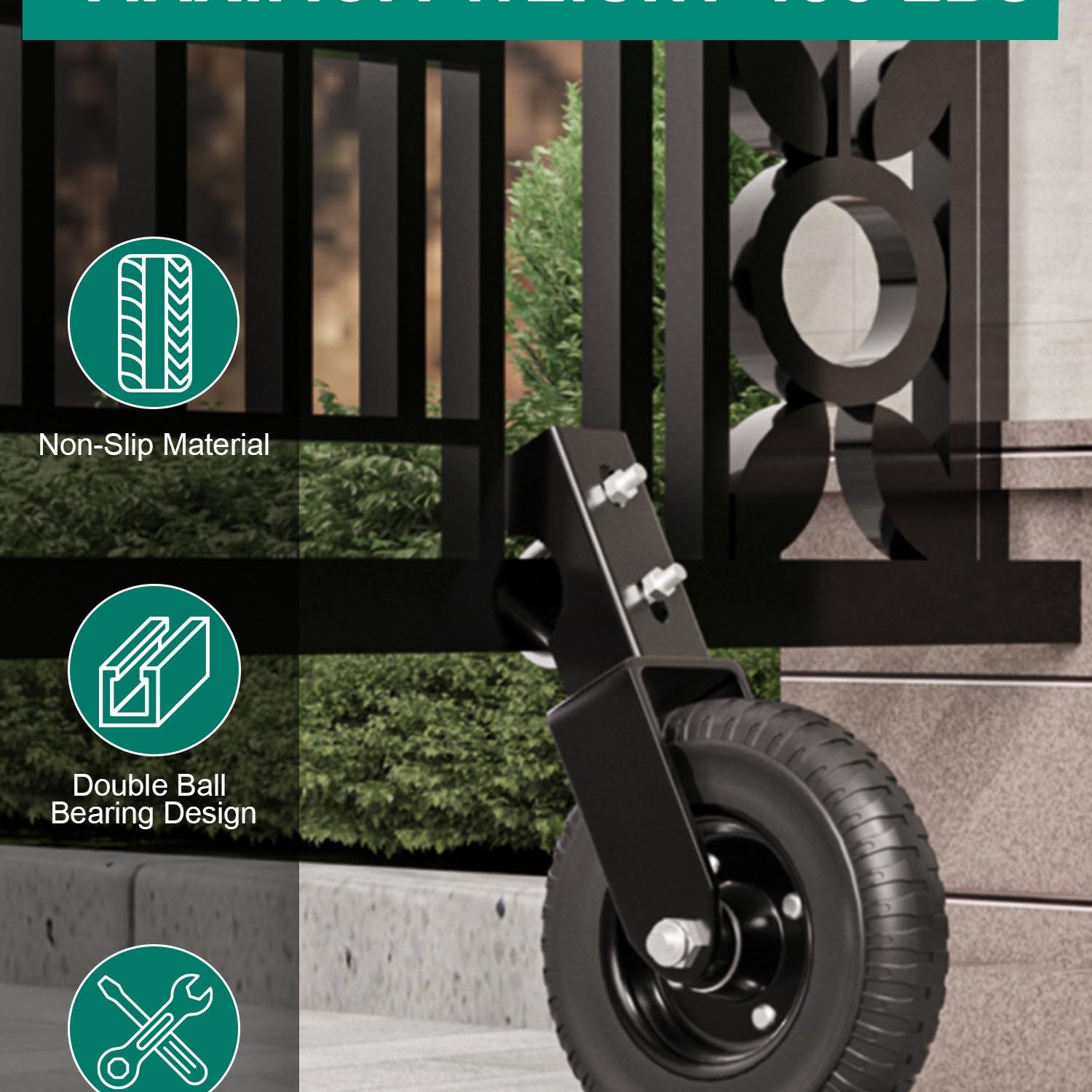 - Heavy-Duty Performance: With a load capacity of 400 lbs, this large and sturdy wheel helps gates open and close smoothly while preventing them from dragging on the ground; It is suitable for chain-link fence gates, ranch gates, cattle fences, farm pipe gates, pool gates, metal gates, swing gates, and more; It performs well on grass, gravel, and concrete surfaces