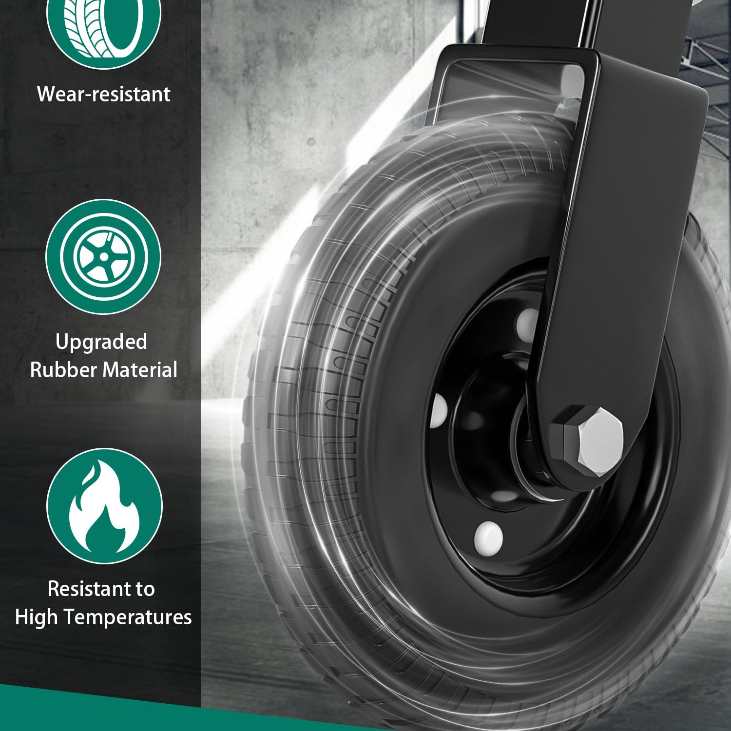 - Stable Construction: This 8-inch heavy-duty gate wheel is crafted from automobile tire rubber and solid steel plate, featuring a galvanized surface for improved wear resistance, corrosion protection, and rust resistance; Its robust design ensures long-lasting performance and stability, making it a reliable choice among similar gate wheels