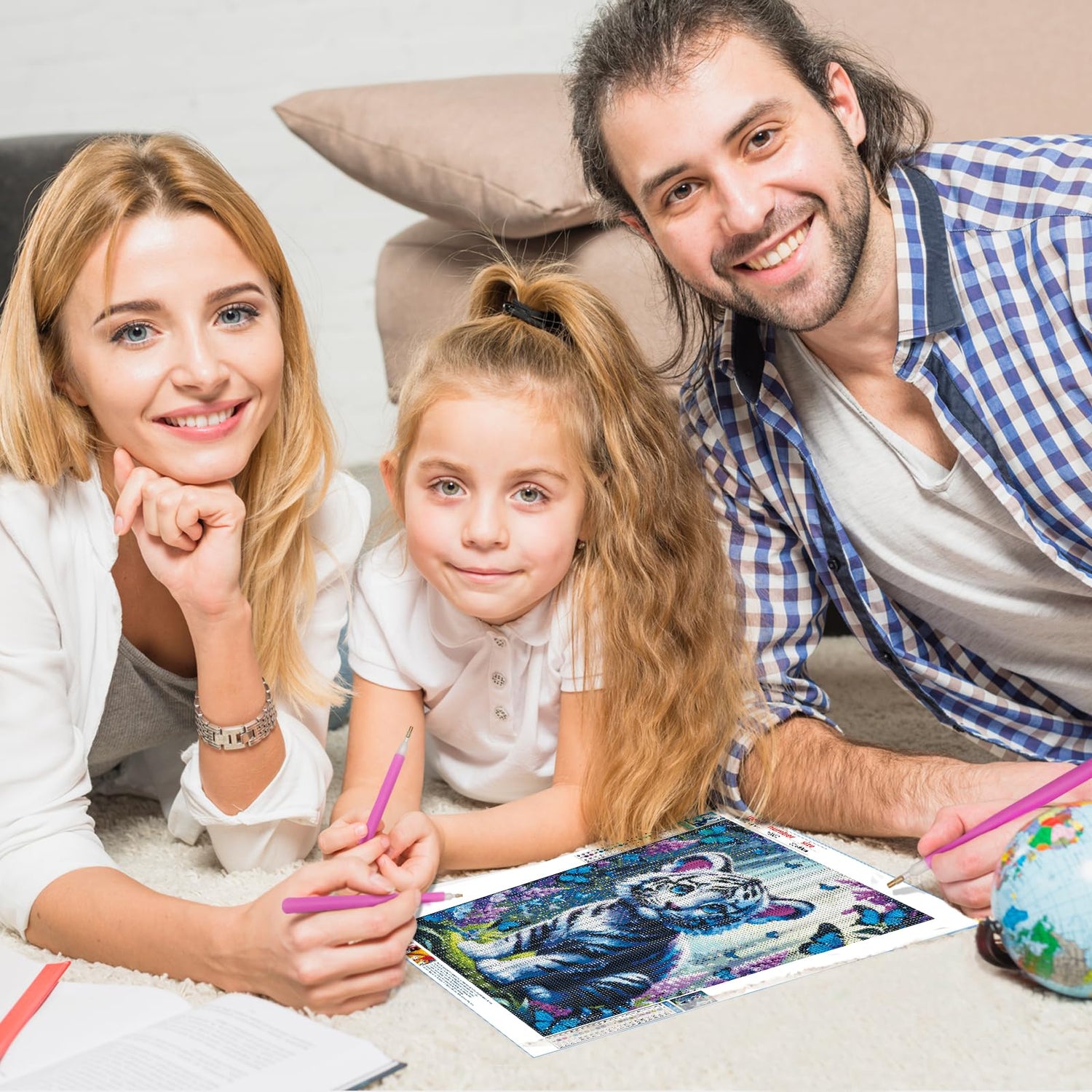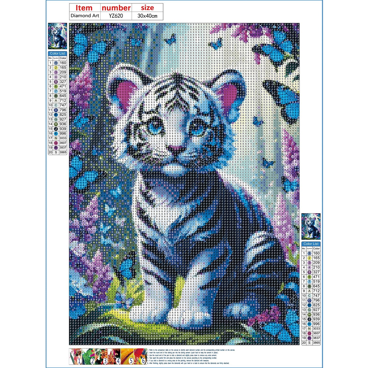 DPHERO Cute Tiger Diamond Painting Kits for Beginners Adults,5D DIY Rose Flowers Diamond Art Kits,Round Full Drill Butterfly Painting Art,DIY Paint by Numbers for Home Wall Decor 12x16 inch