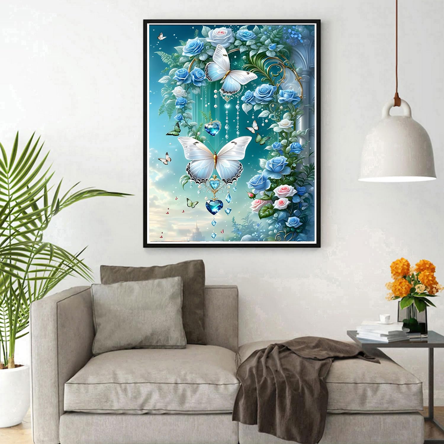 DPHERO DIY Blue Flowers Diamond Painting Kits for Beginners Adults,5D Butterfly Diamond Art Kits,Round Full Drill Fantasy Diamond Painting Art,DIY Painting by Numbers Diamond Art Painting 12x16 inch