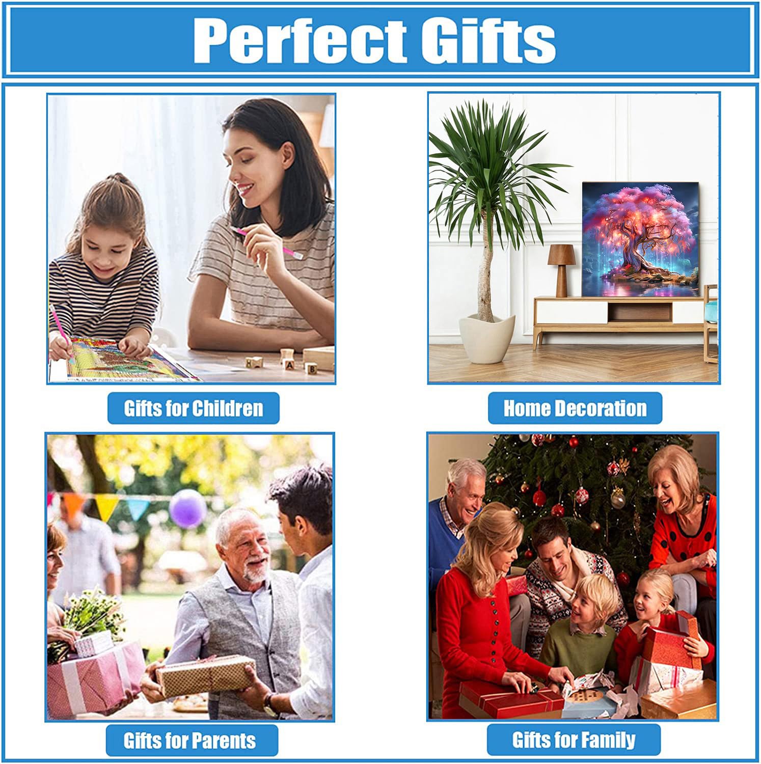 4. The diamond painting art set can not only be used as home decoration, but also as a gift, such as Christmas/Thanksgiving/Wedding/Birthday etc. 5. The diamond painting kit is friendly to adults/beginners/seniors.