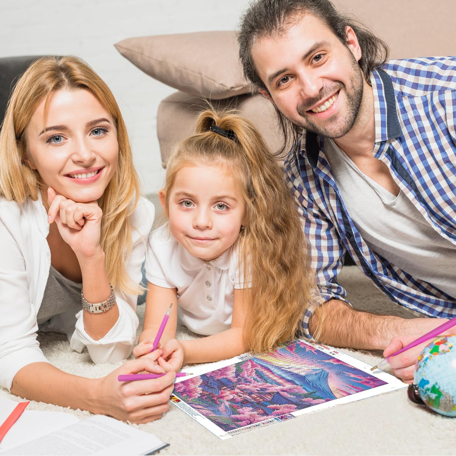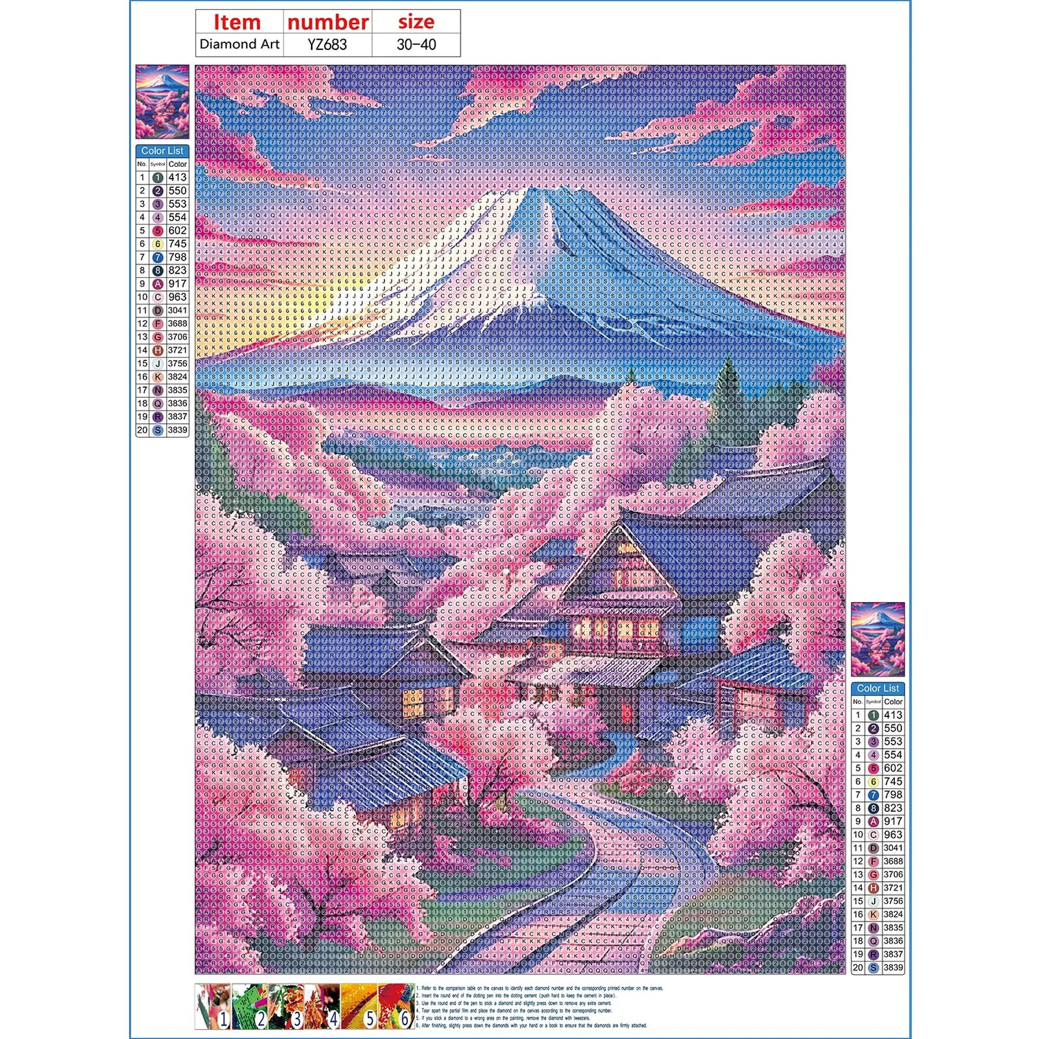 DPHERO Mount Fuji Diamond Painting Kits for Beginners Adults,5D DIY Cherry Blossoms Diamond Art Kits,Round Full Drill Sunset Gem Art Crafts Kits,DIY Painting by Numbers for Home Wall Decor 12x16 inch