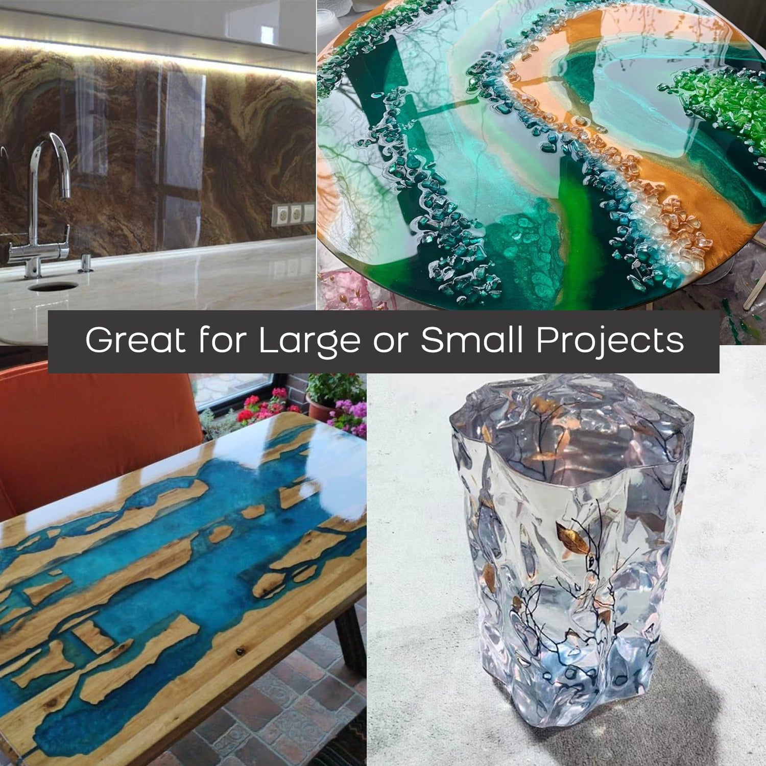- UV Resistant: Our resin is designed for longevity with superior UV resistance, preventing yellowing and preserving clarity for durable and beautiful finish.