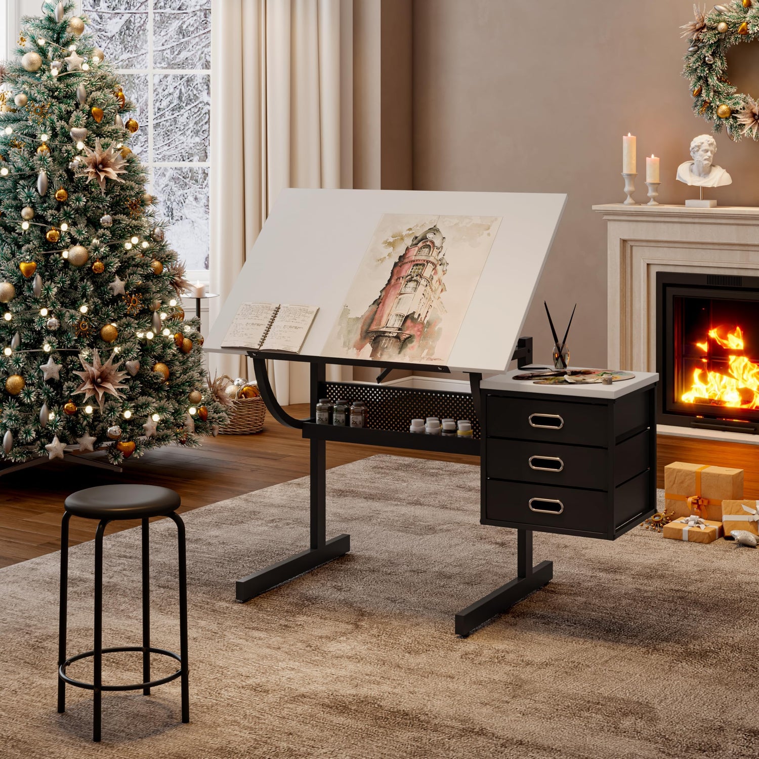 - 【Versatile Application】You Can Draw Here, And The Main Workstation Can Be Adjusted According To Your Needs. When Not In Use, It Can Also Be Used As A Normal Desk For Daily Use. All Accessories Are Included For Your Easy Assembly.
