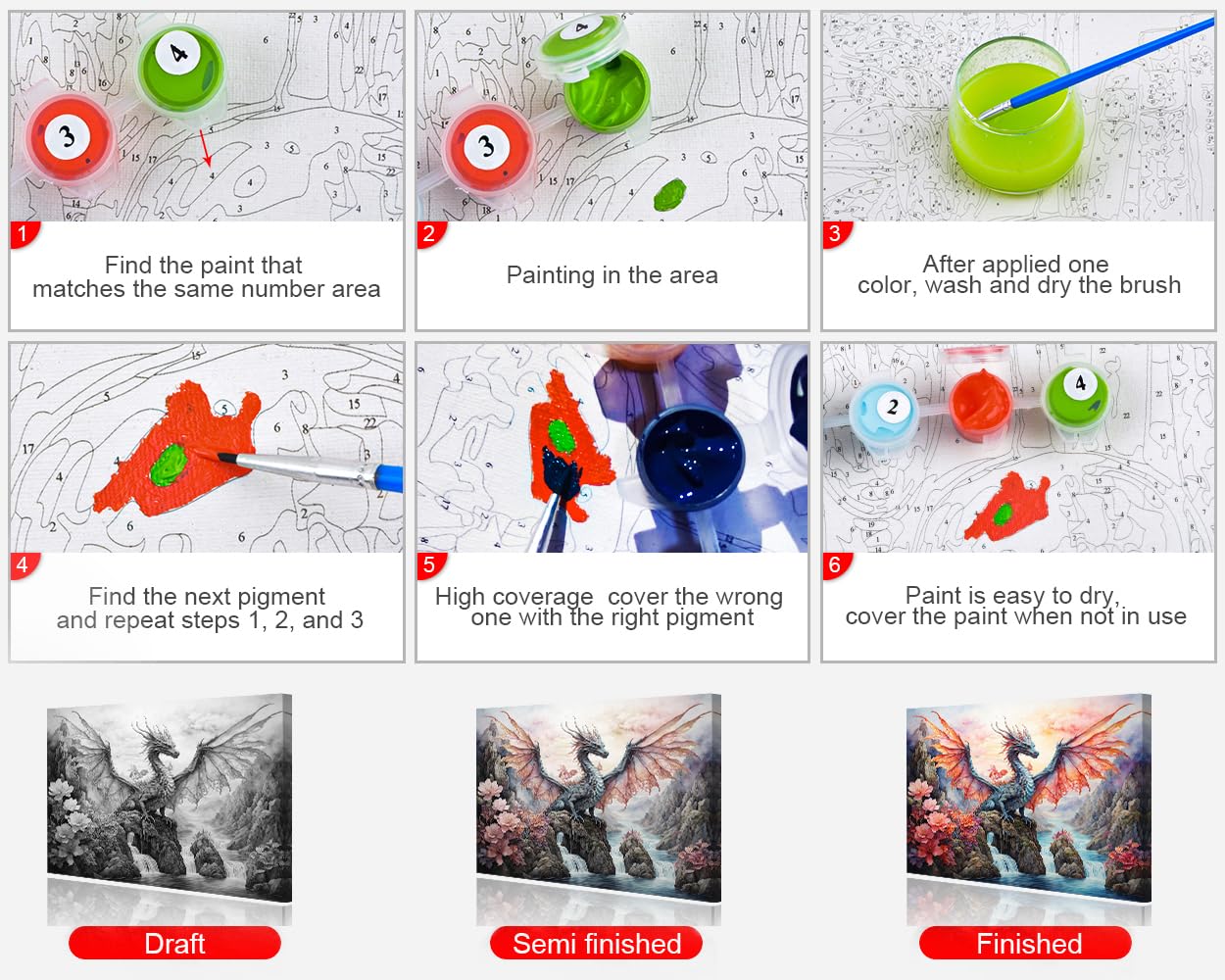- Packing List: The Paint by number includes a 16 x 20 inch(40x50cm) canvas, 3 brushes and a set of high-quality paint. Help your child enhance color coordination and stay away from computer radiation, paint by numbers is a great option.