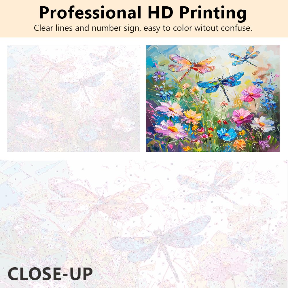 Dragonfly Paint by Numbers Kits Adults Pating Numbers Art DIY Wild Flower Weeds Paint by Numbers Artwork Beautiful Pattern on Canvas Paintwork 16x20 in Bedroom Painting Wall Art Decor