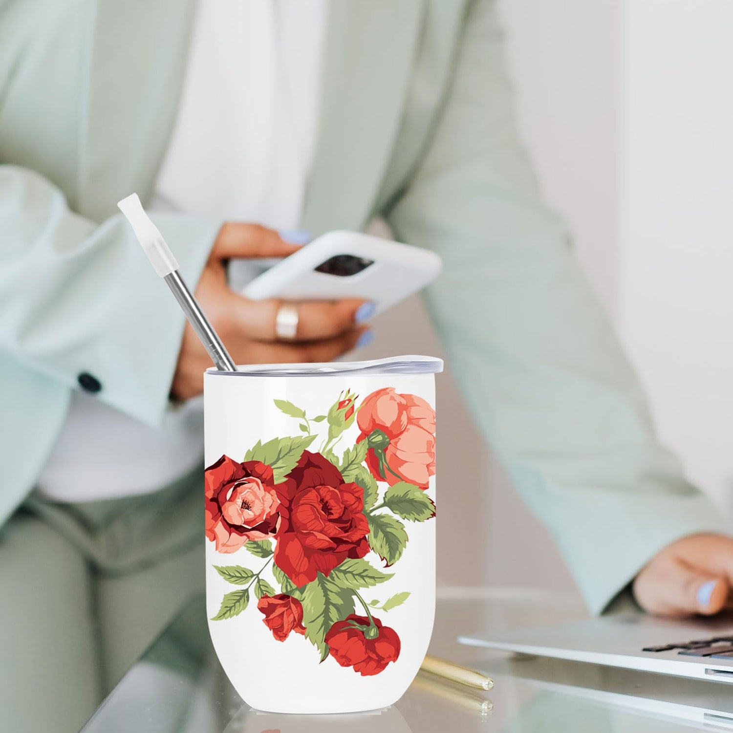 Draheri 12 Oz Sublimation Wine Tumblers Blanks Bulk, Stainless Steel Double Wall Insulated Sublimation Cups, Sublimation Mugs with Straw and Straw Brush, Individually Boxed (8 Pack)