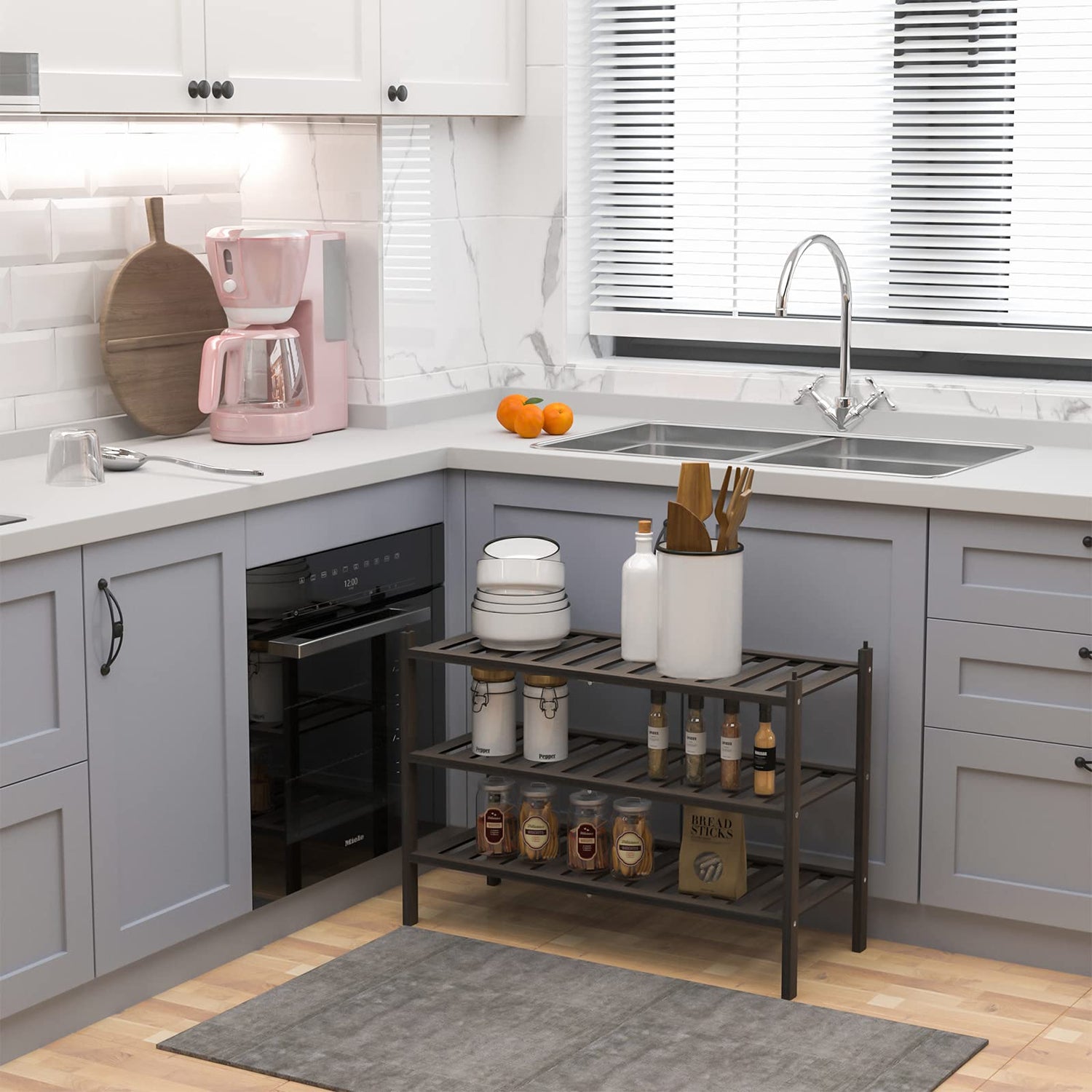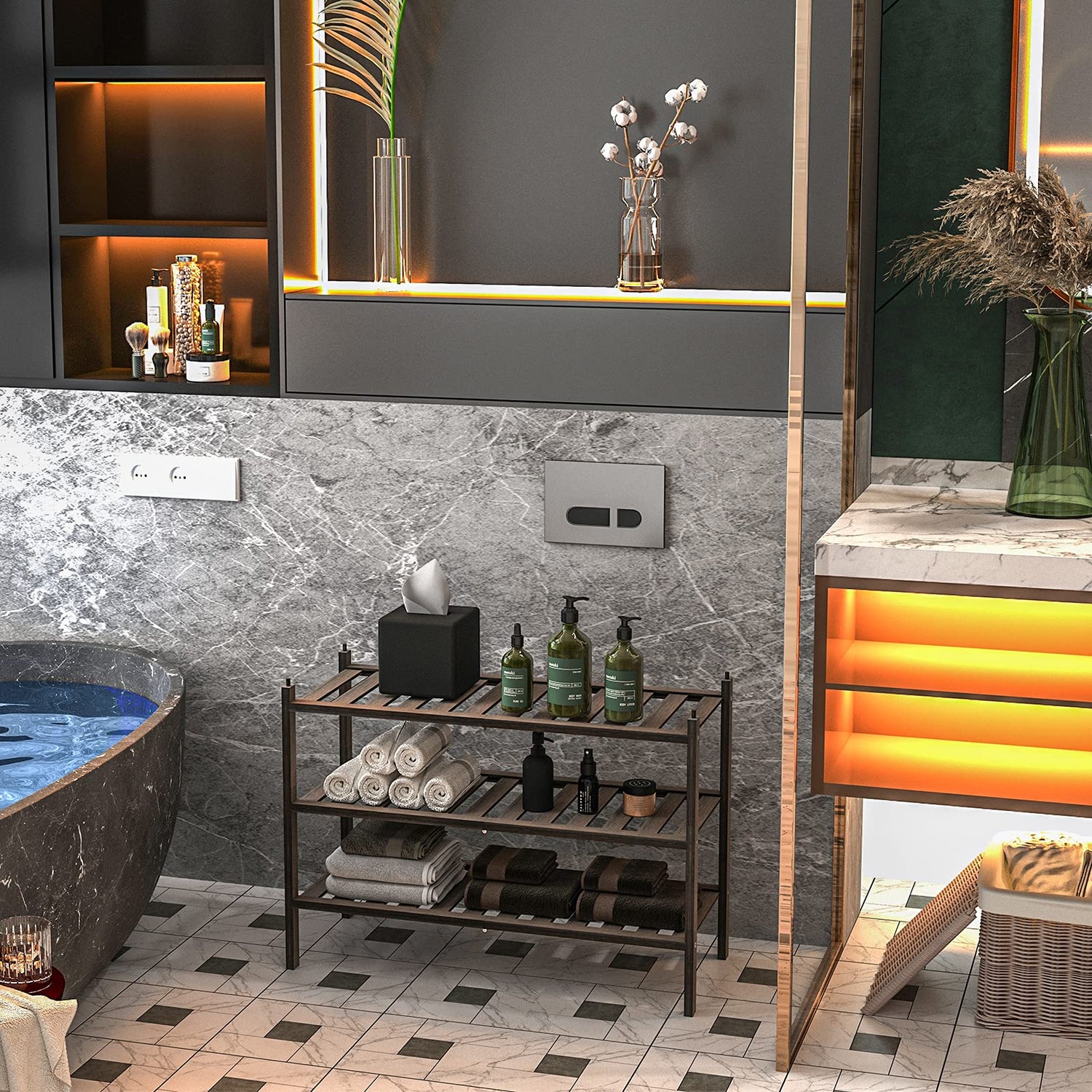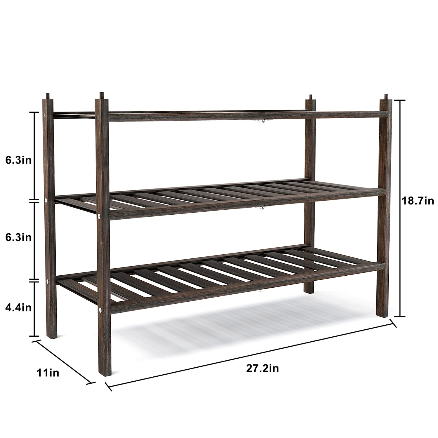 Dranixly Shoe Rack, 3-Tier Bamboo Stackable Shelf Storage Organizer, Stand for Closet, Entryway, Hallway, Bathroom and Living Room(Mocha)