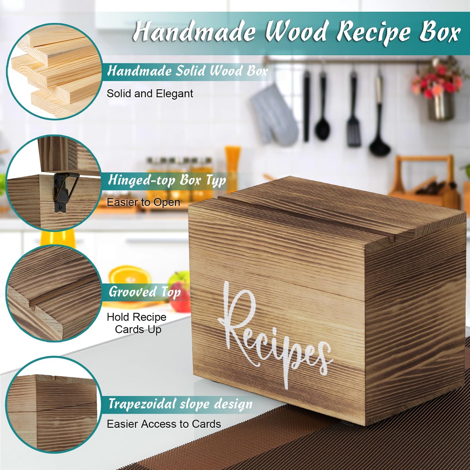 - 【Why You Need a Recipe Box】 You can find your family history through your family recipe cards and box set. The personalized recipe box is a timeless confidant in the kitchen, customizes your favorite recipes, and eliminates the need to constantly swipe through your phone to find the recipe you need