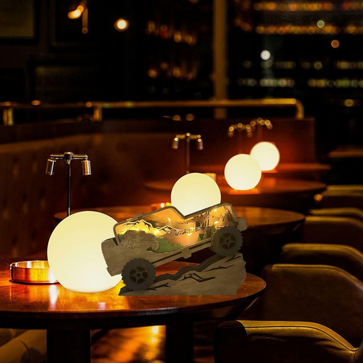 Drawelry 3D Wood Carving Lamp Home Creative Decorative, Funny Family Presents Ideas Christmas Living Room Office Decor Warm LED Night Lights Christmas Birthday Gift for Friend Son Dad Boys (Cool Car)