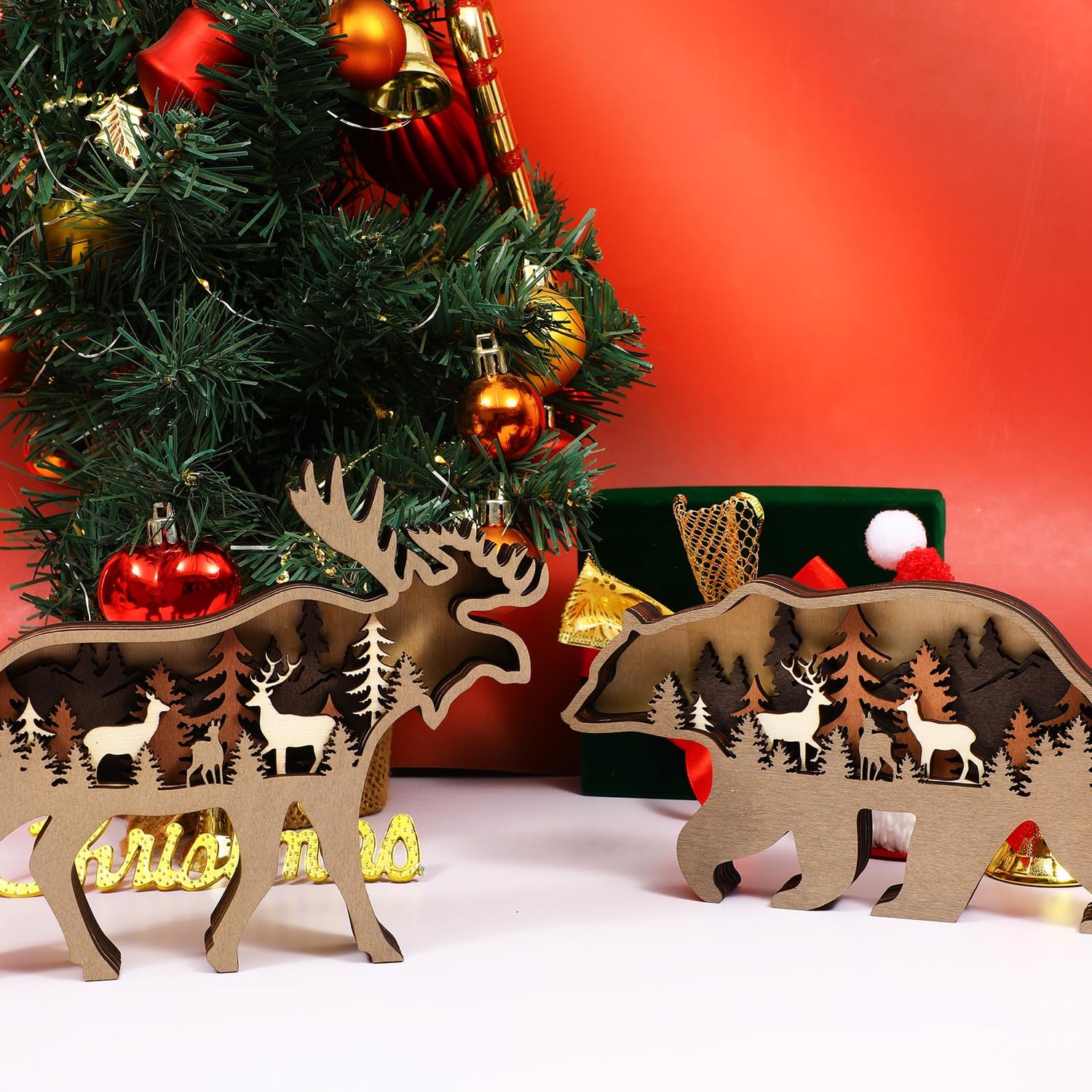 Drawely 3D Wooden Animals Carving, Wood Carving Animals Wall Decor, Modern Festival Forest Sculpture Christmas Living Room Office Decor Birthday Gifts for Friend Daughter Son Mom Dad (Moose)