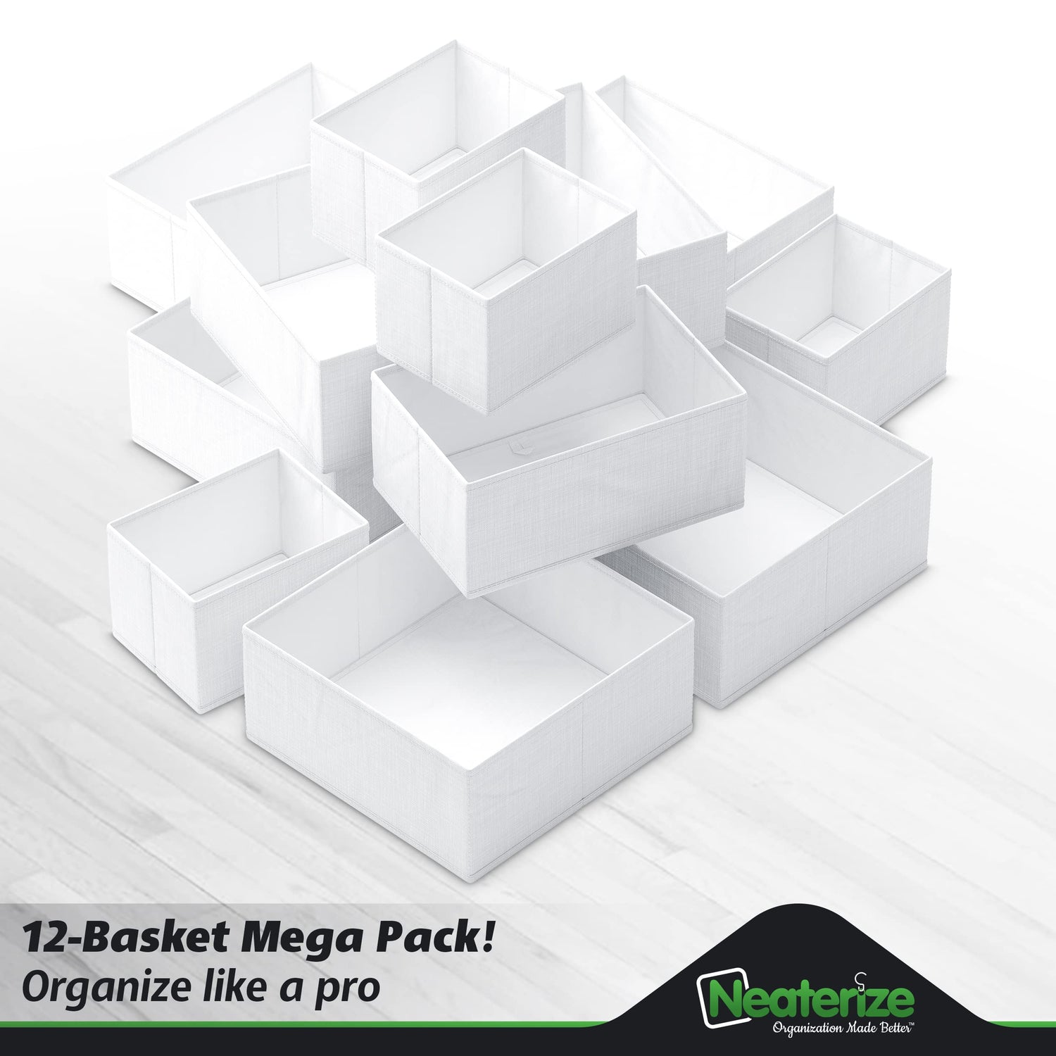 Drawer Organizer Clothes Set of 12 White-Grey - Dresser Organizer For Nursery, Bedroom, Closet - Perfect Baby Clothes Organizer and Storage & General Nursery Organization or Dresser Drawer Organizers