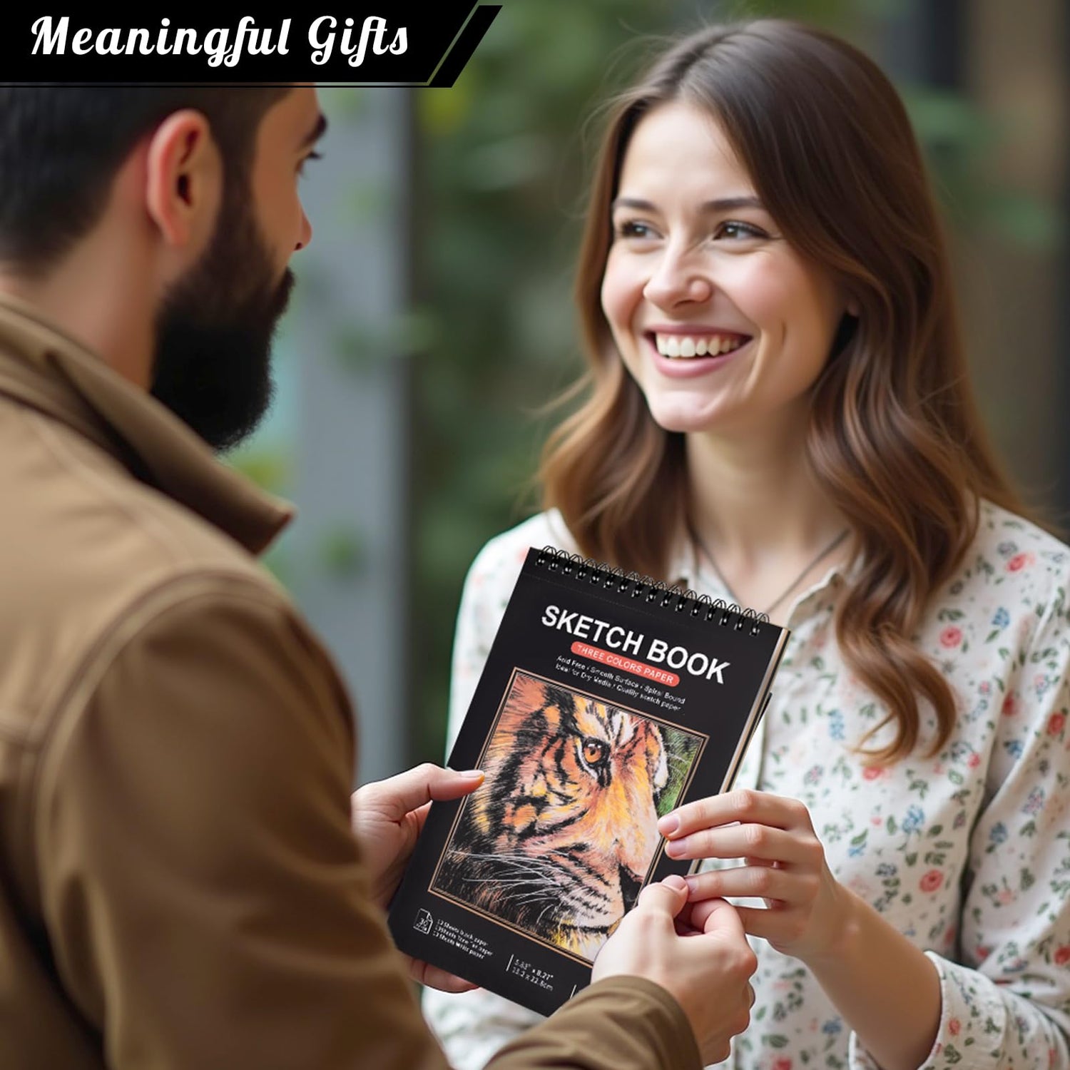 Drawing Sketchbook Kit, A5 Sketch Book with 36 Color Pencils, Three Color Black Sketch Pad, Acid-Free Sketch Pad for Kids, Artist, Art Paper Drawing Supplies for Gifts (5.8×8.3 inch)