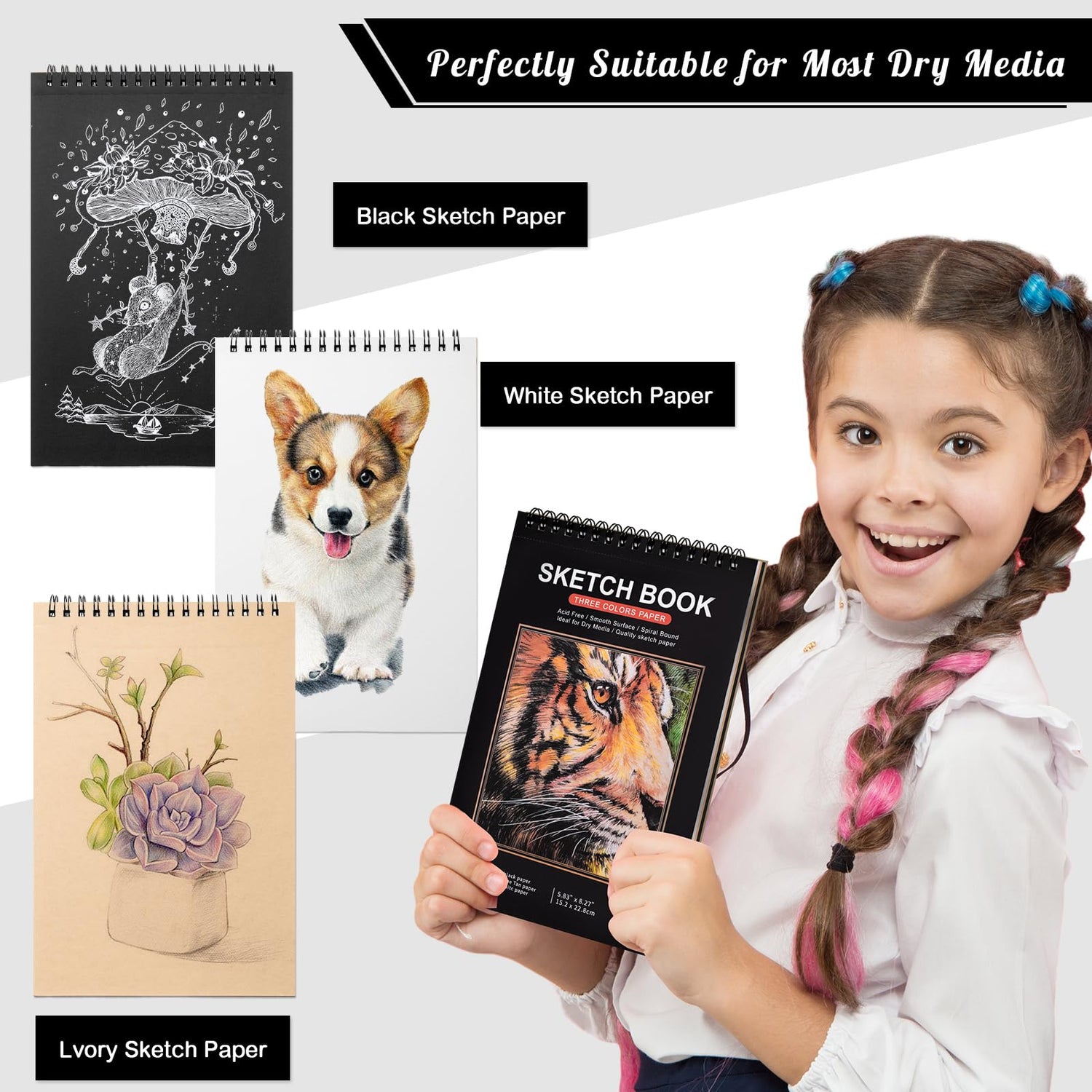 - 【Suitable for painters of all levels】Spiral sketch book are not only suitable for children, beginners, and drawing enthusiasts, but also meet the needs of designers and artists. Whether you're using it to record the good things in life or for a serious art project, this sketch pad has it covered. Drawing paper pads can display delicate lines and carry rich color block renderings. This art sketchbook is the ideal gift for drawing lovers. Come and experience the art paper sketch pad now