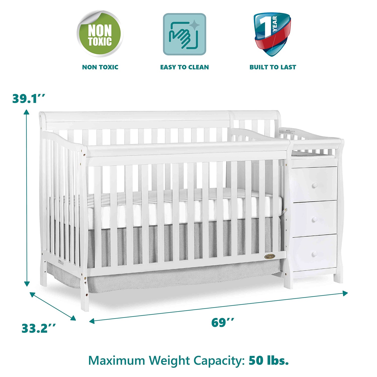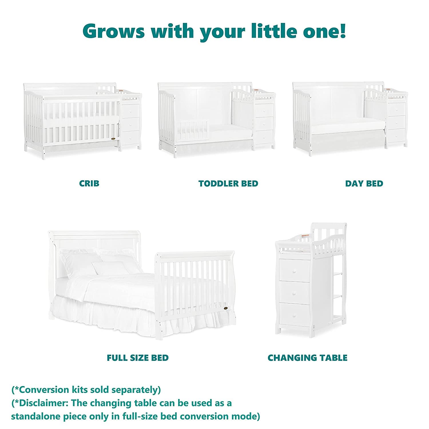 - Convertibility options: The Brody transitions with your baby Convert it from a crib to a toddler bed, a day bed and then a full-size bed (bed rails sold separately). Attached is a three-drawer changing table making this a must-have nursery piece