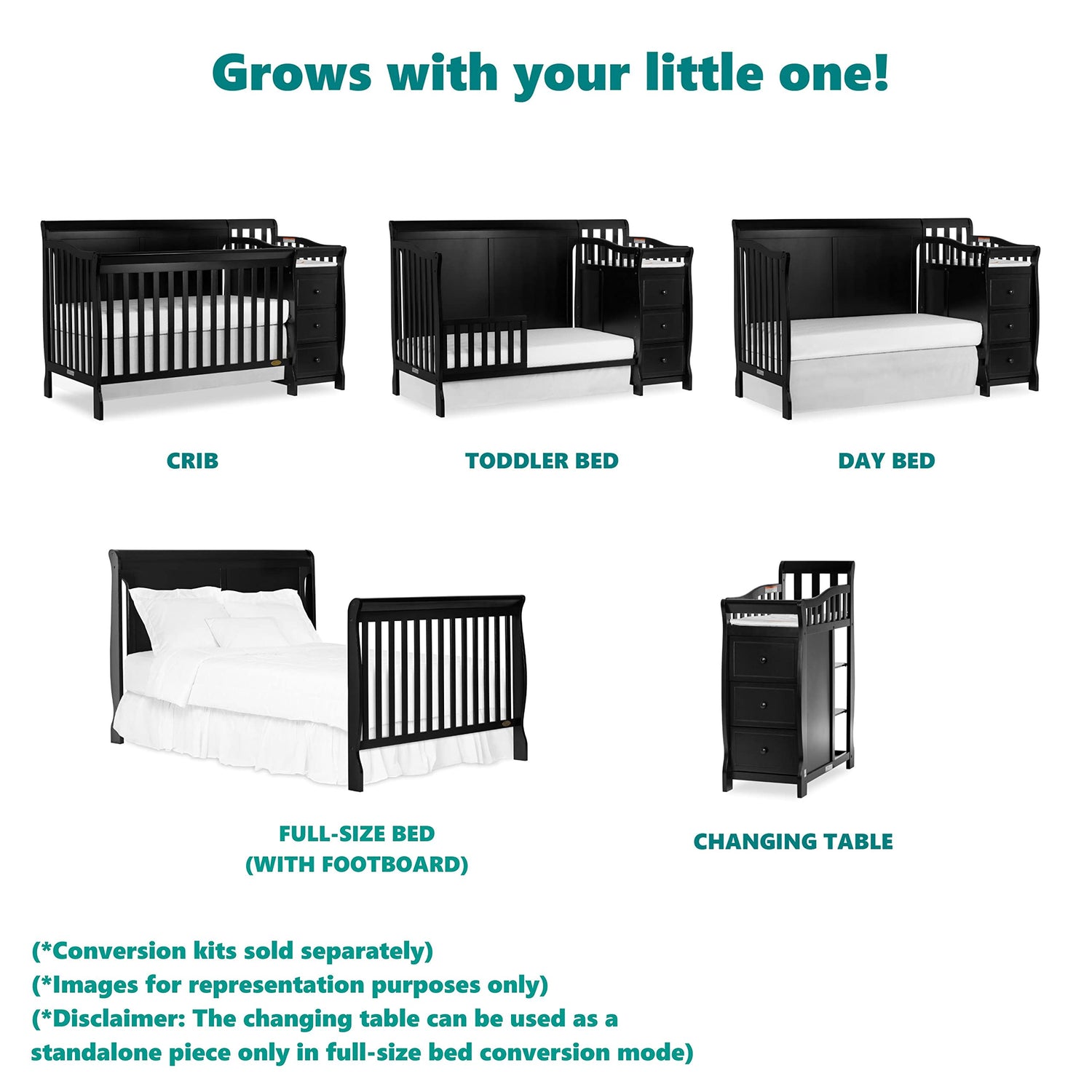 - CONVERTIBILITY OPTIONS: Convert it from a crib to a toddler bed, a day bed and then a full-size bed (bed rails sold separately).NOTE: The changing table can be used as a standalone piece only in full-size bed conversion mode.