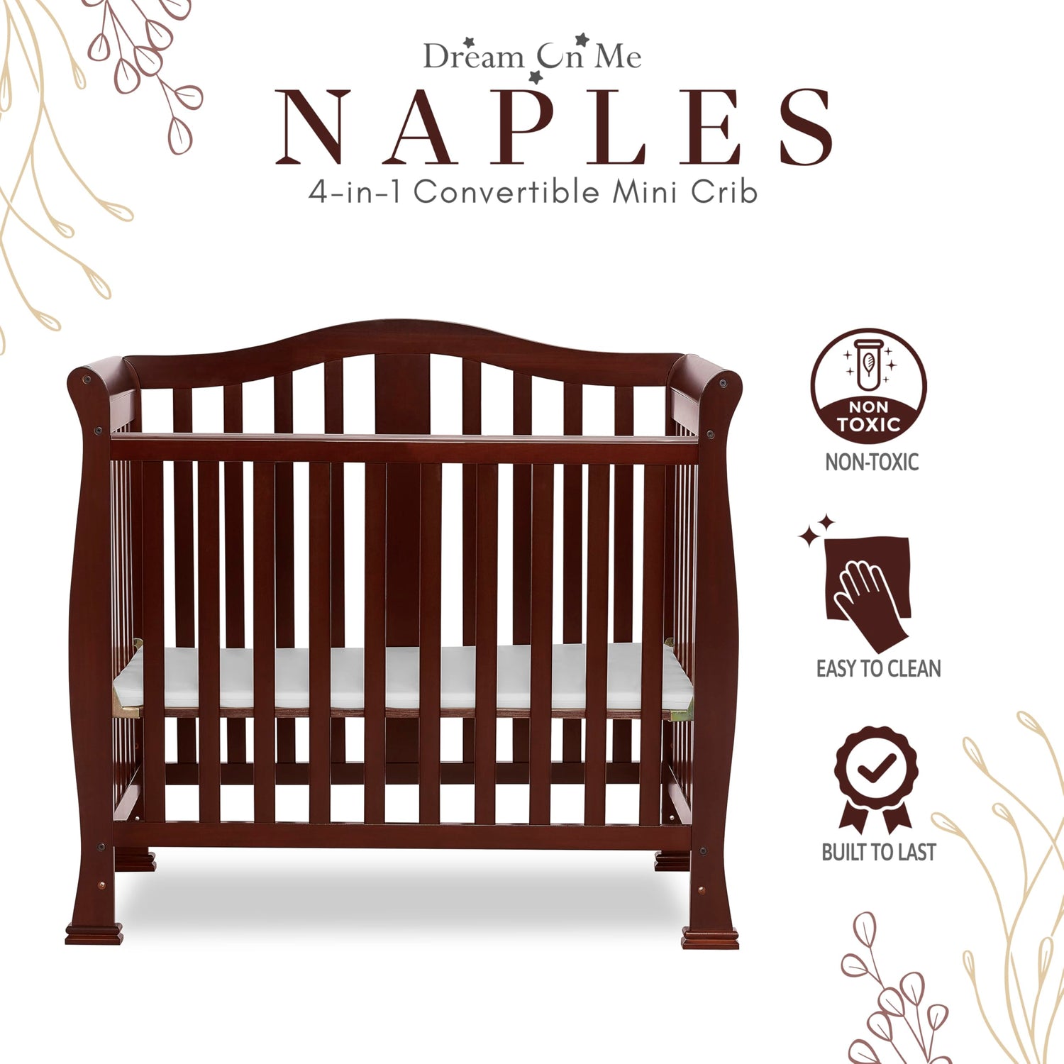 Dream On Me Addison 4-in-1 Convertible Mini Crib in Espresso, Greenguard Gold Certified, Non-Toxic Finishes, Built of New Zealand Pinewood, Comes with 1” Mattress Pad