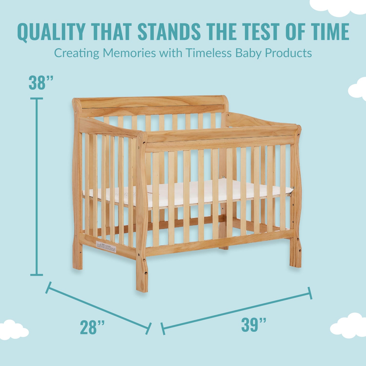 Dream On Me Aden 4-in-1 Convertible Mini Crib In Natural, Greenguard Gold Certified, Non-Toxic Finish, New Zealand Pinewood, With 3 Mattress Height
