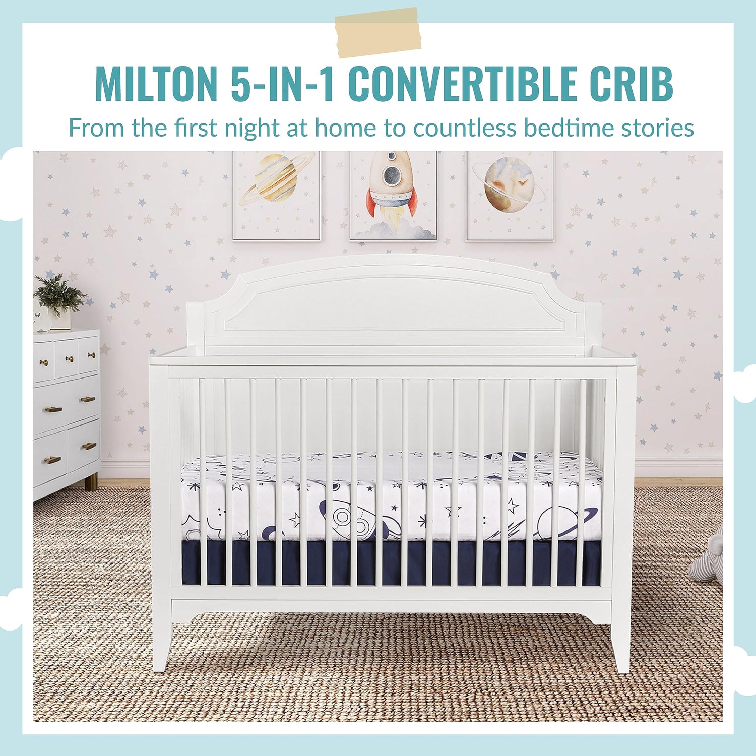 Dream On Me JPMA & Greenguard Gold Certified Milton 5-in-1 Convertible Crib Made with Sustainable New Zealand Pinewood in White, Non-Toxic Finish