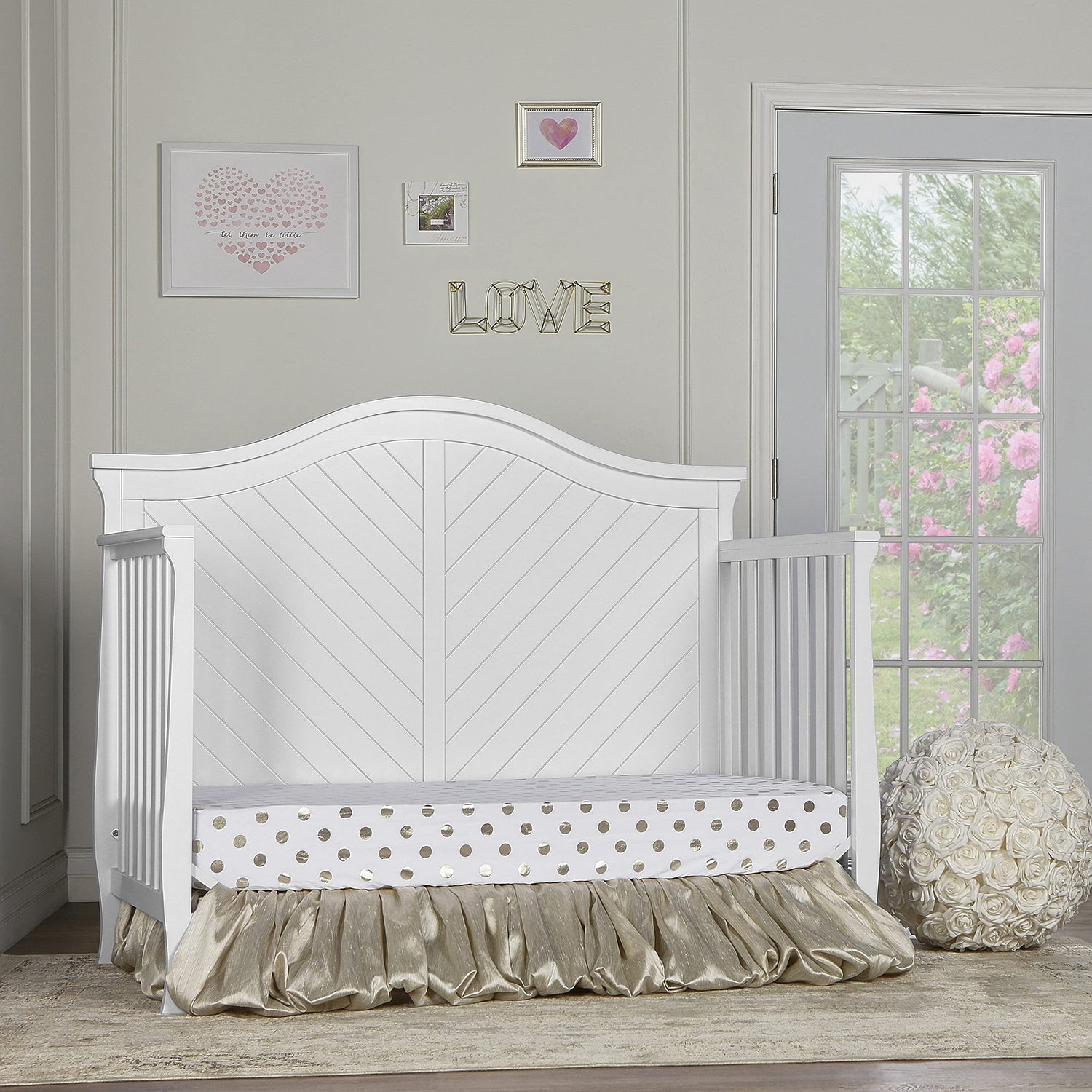 Details: The Kaylin 5-in 1 Convertible Crib is a stylish investment that stands the test of time, making it the only bed your child will need. Elegant and safe, it matches strides with your child, transitioning easily into a toddler bed and daybed (conversion kit sold separately). The back panel converts effortlessly into a full-size headboard - add a bed frame (sold separately) to use as a full size bed. The mattress platform has the convenience of 4 mattress height positions, and can be adjusted according to the age of your baby.Built of durable, sustainable and renewable New Zealand pinewood, the Kaylin’s graceful curves, complemented by five gorgeous finishes fit perfectly into any nursery or growing child’s room decor. It features a bell shaped full panel headboard and oblique inset design, giving it an elegant, timeless appeal. All our cribs are designed with a focus on safety, are JPMA certified and meet all applicable ASTM/CPSC standards. All tools for assembly included. It measures 56Lx31Wx47H inches; maximum weight capacity is 50 lbs. For the best fit, we recommend any Dream on Me or Evolur standard, full-size, non-toxic, Greenguard Gold certified crib mattress (sold separately).