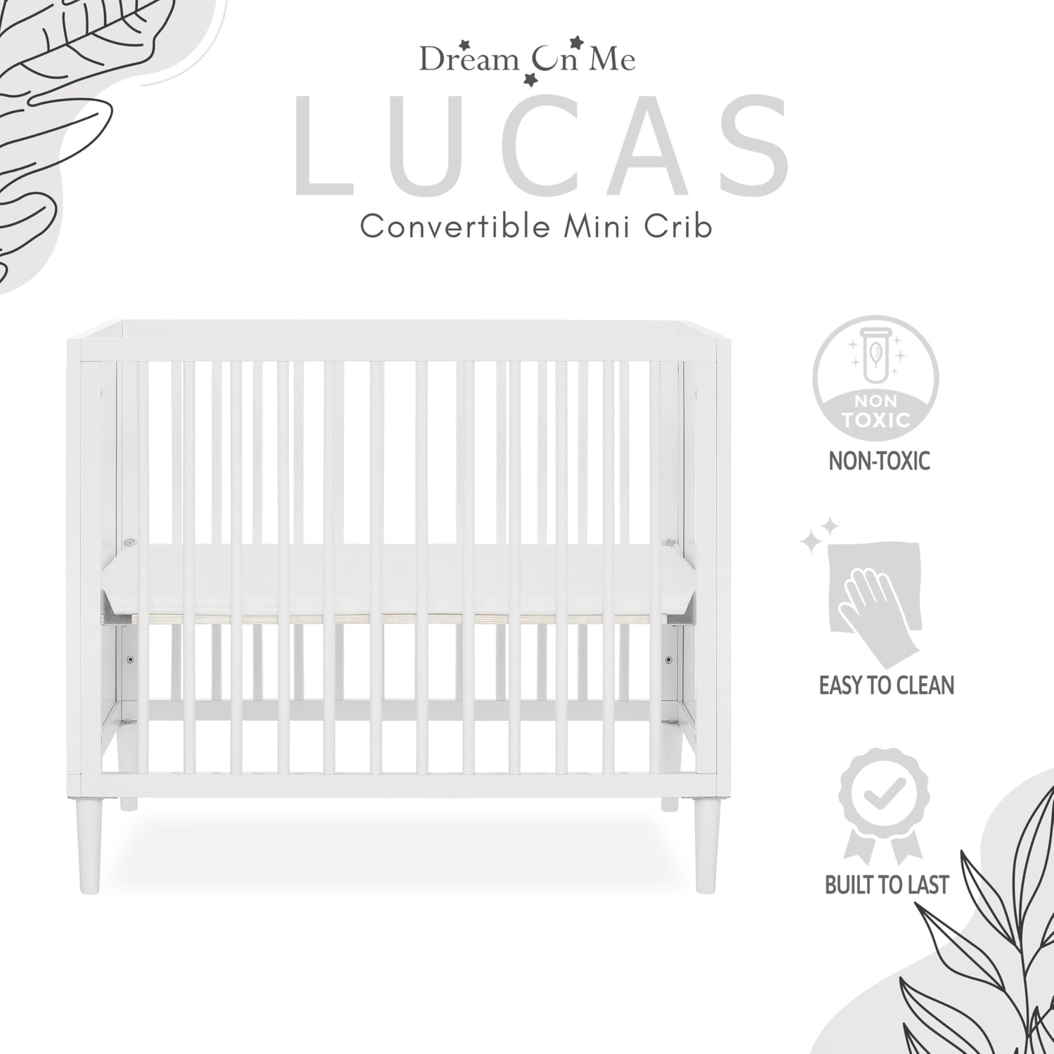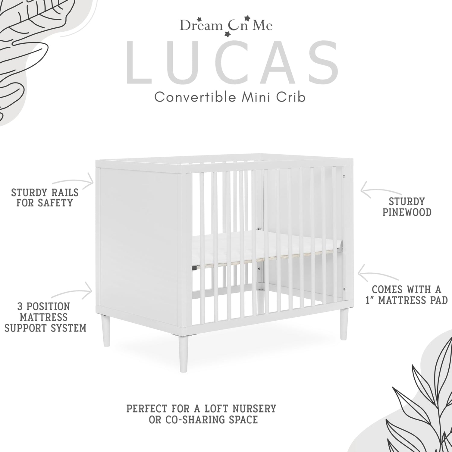 Dream On Me Lucas Mini Modern Crib with Rounded Spindles in White , 39x25.5x33 Inch (Pack of 1)