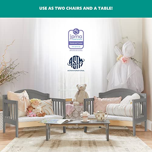 - 3 in 1 CONVERTIBILITY: The Portland converts easily from a toddler bed into 2 kid-sized chairs and a table that complement any room setting. Keeps pace with the changing needs of your growing child. Conversion kit sold separately