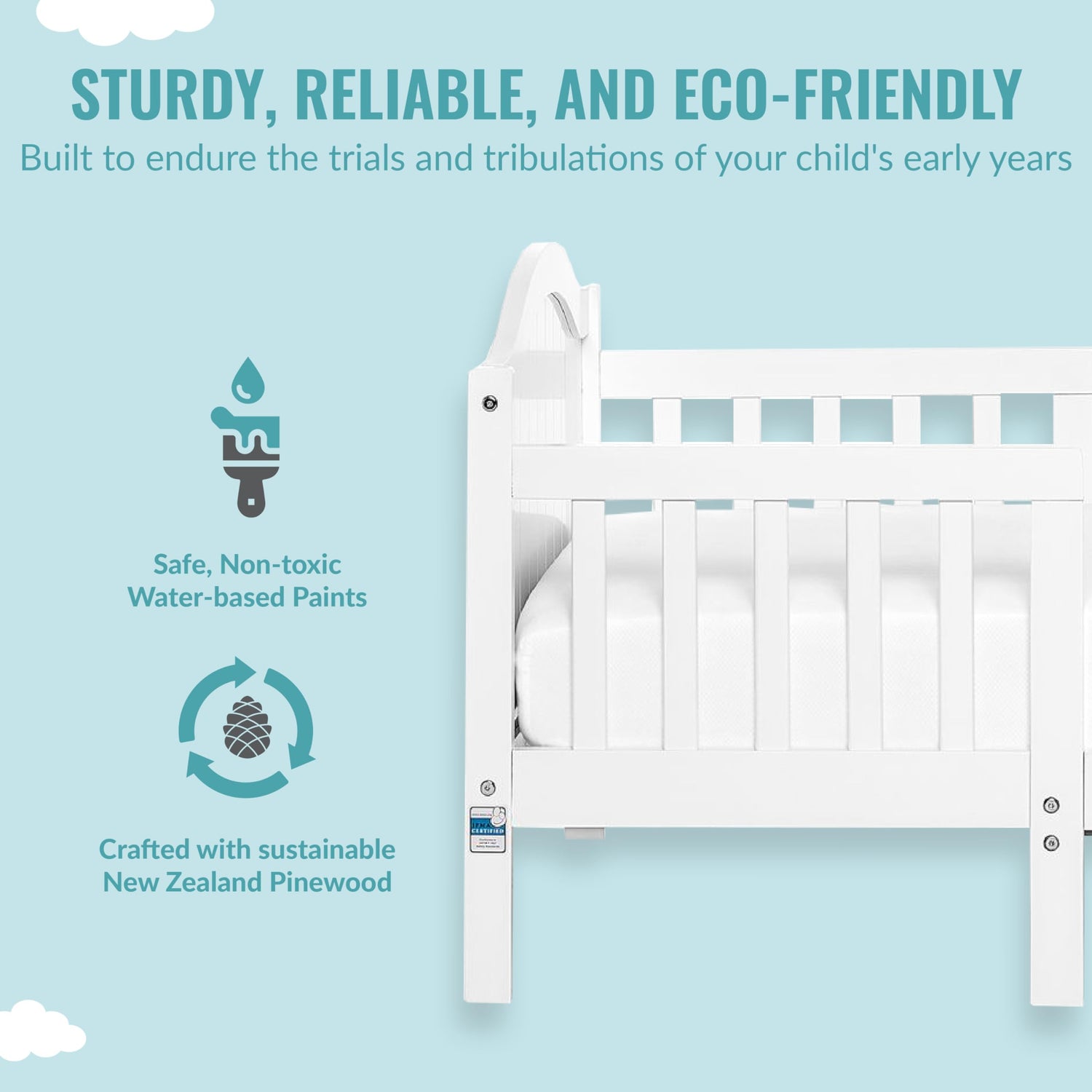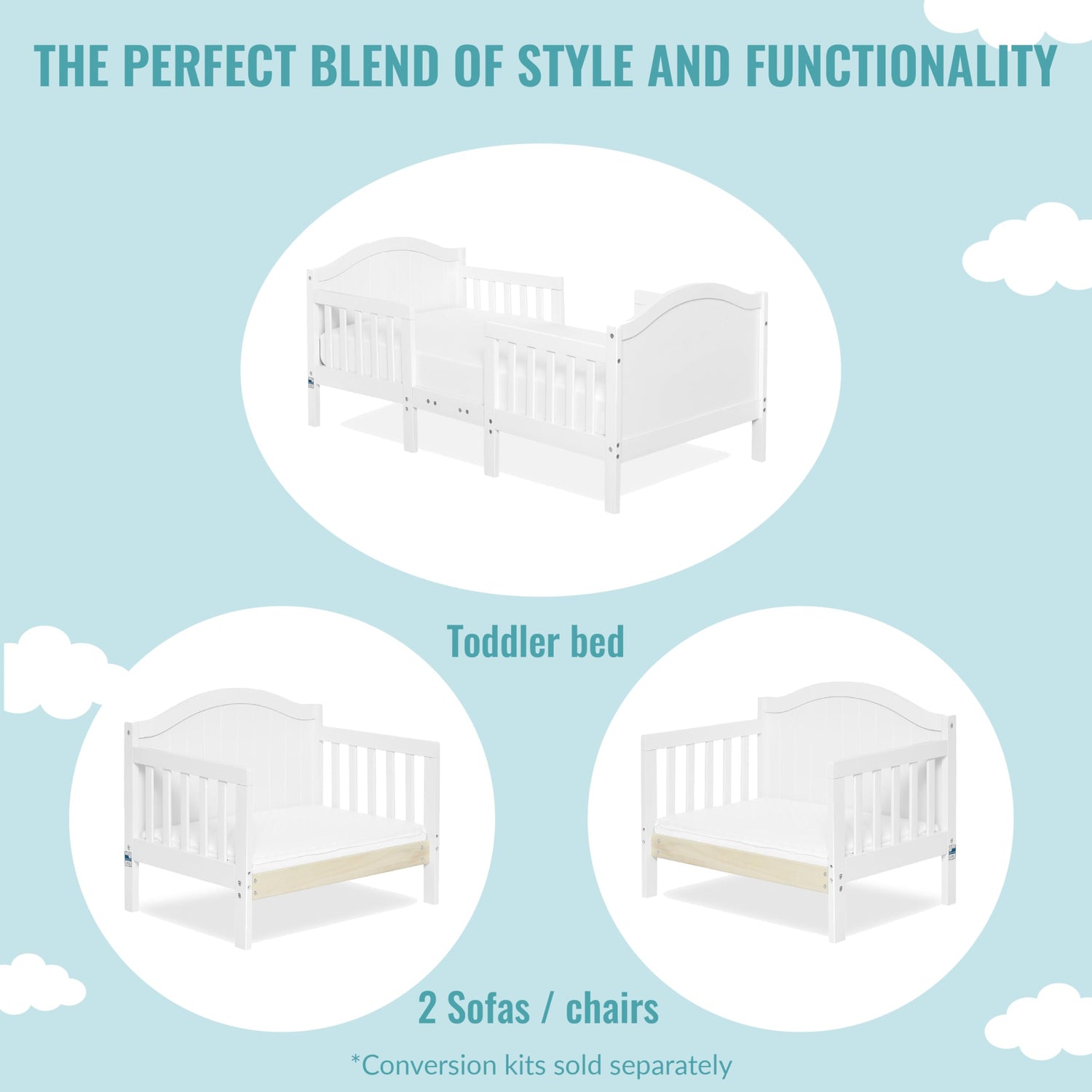 Dream On Me Portland 3 In 1 Convertible Toddler Bed in White, Greenguard Gold Certified, JPMA Certified, Low To Floor Design, Non-Toxic Finish, Pinewood