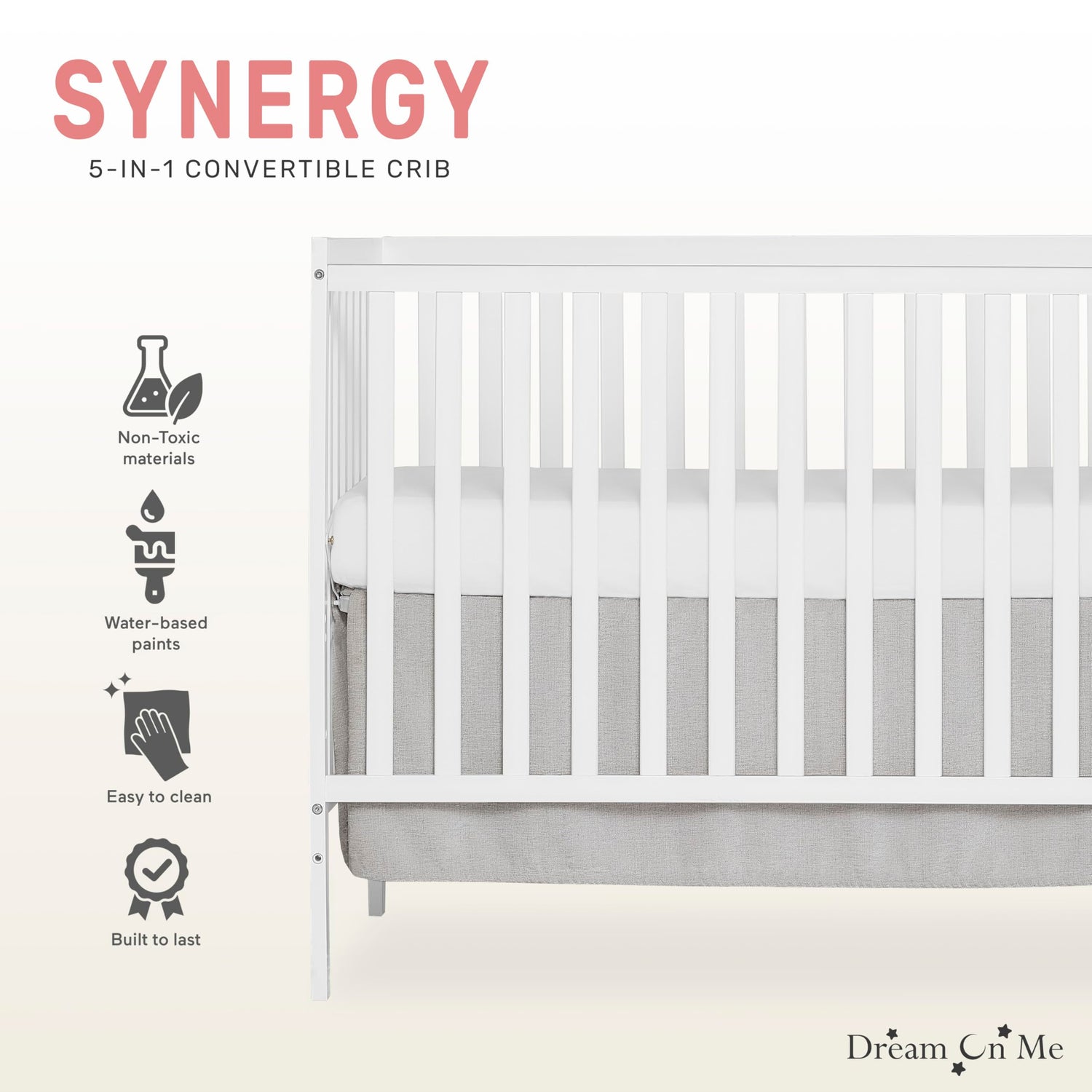 Dream On Me Synergy 5-In-1 Convertible Crib In White, Greenguard Gold Certified