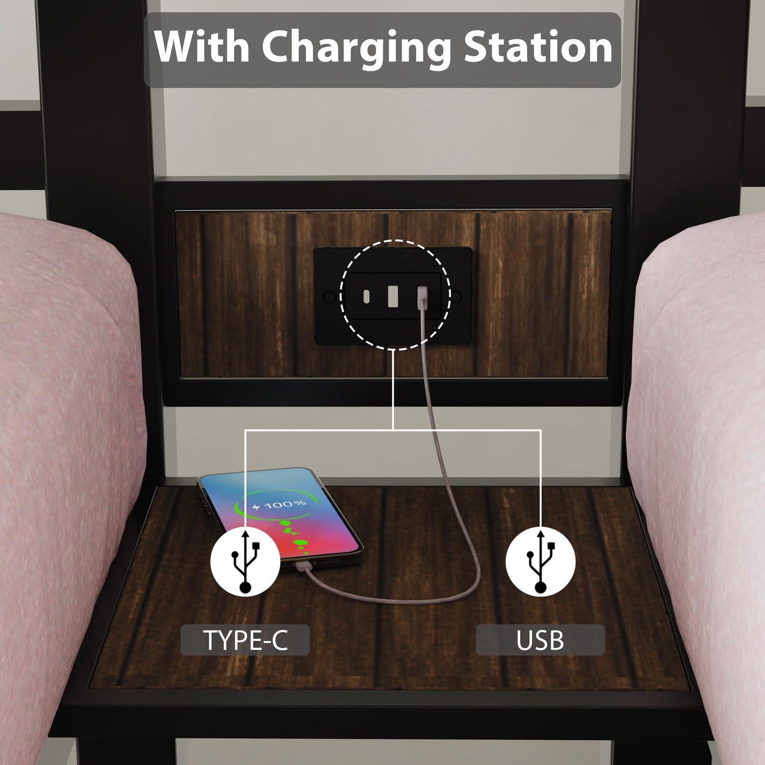 - 【Charge Devices Right from Your Bed】Never hunt for an outlet again! Our bunk bed comes with a built-in charging station—2 USB ports and 1 Type-C port—so phones, tablets, and gadgets can power up within arm’s reach. Perfect for late-night scrolling or morning alarms.
